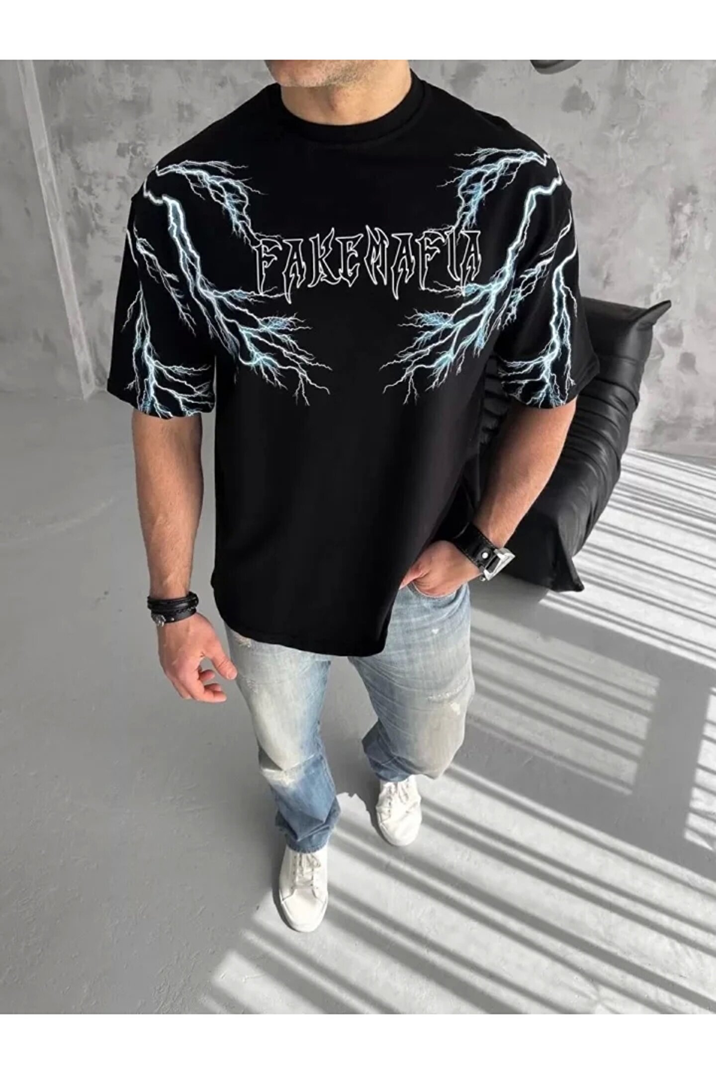 Silerra Unisex Bisiklet Yaka Baskılı Oversize T-Shirt - Siyah