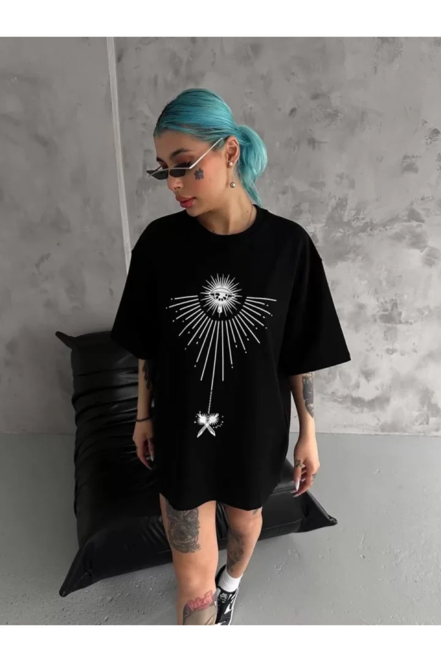 Silerra Unisex Bisiklet Yaka Baskılı Oversize T-Shirt - Siyah