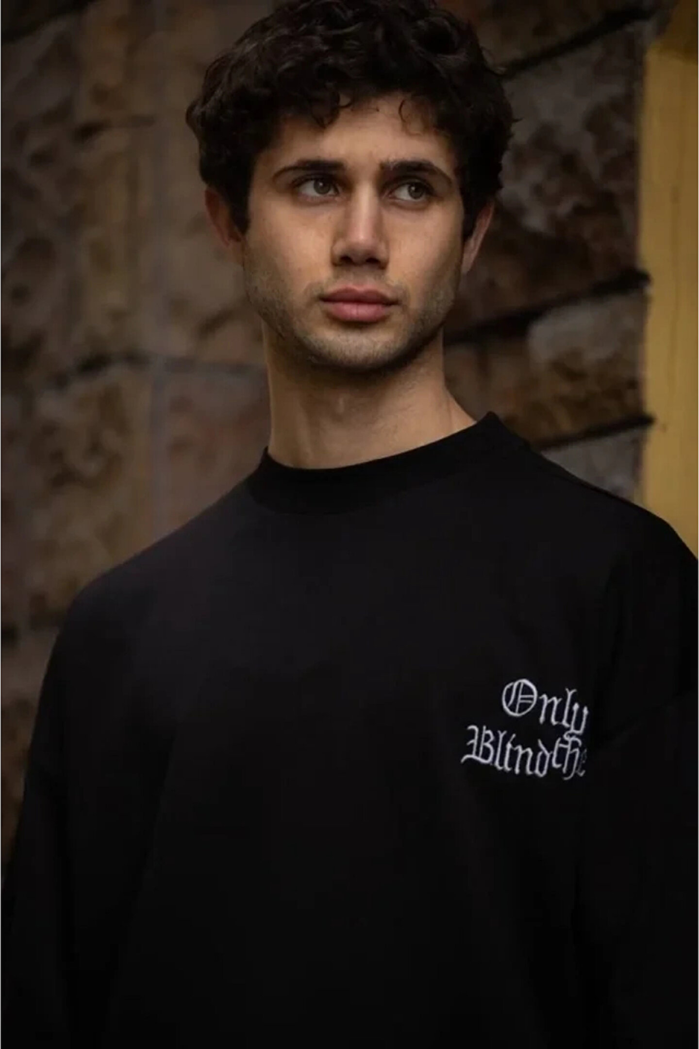 Silerra Unisex Bisiklet Yaka Baskılı Oversize T-Shirt - Siyah