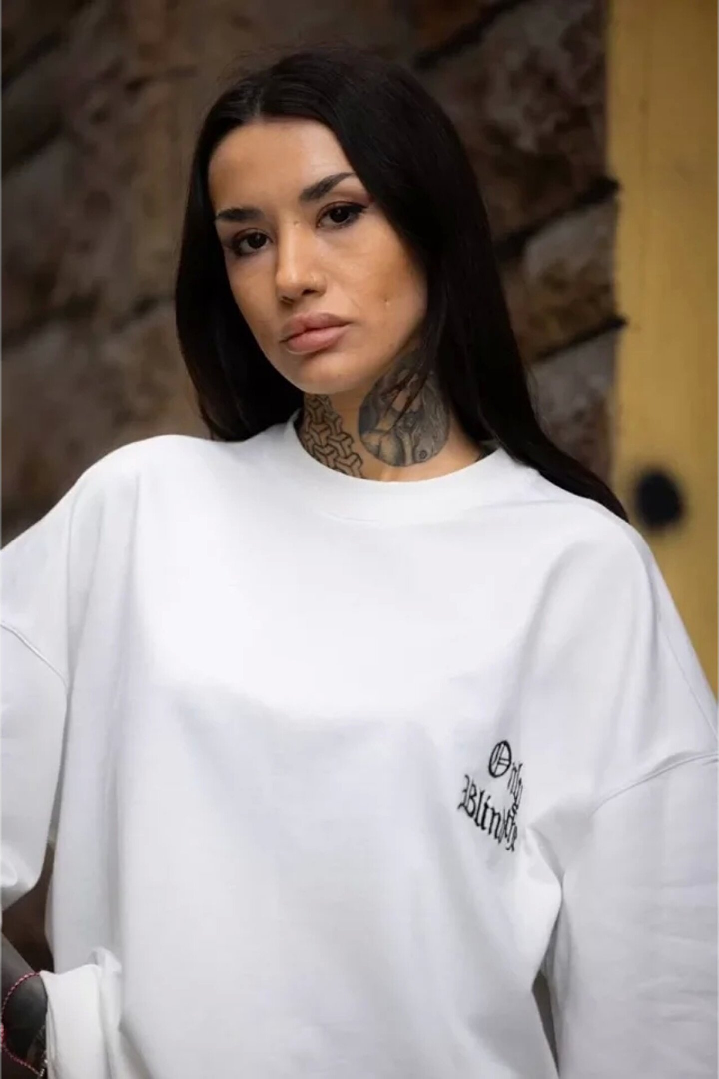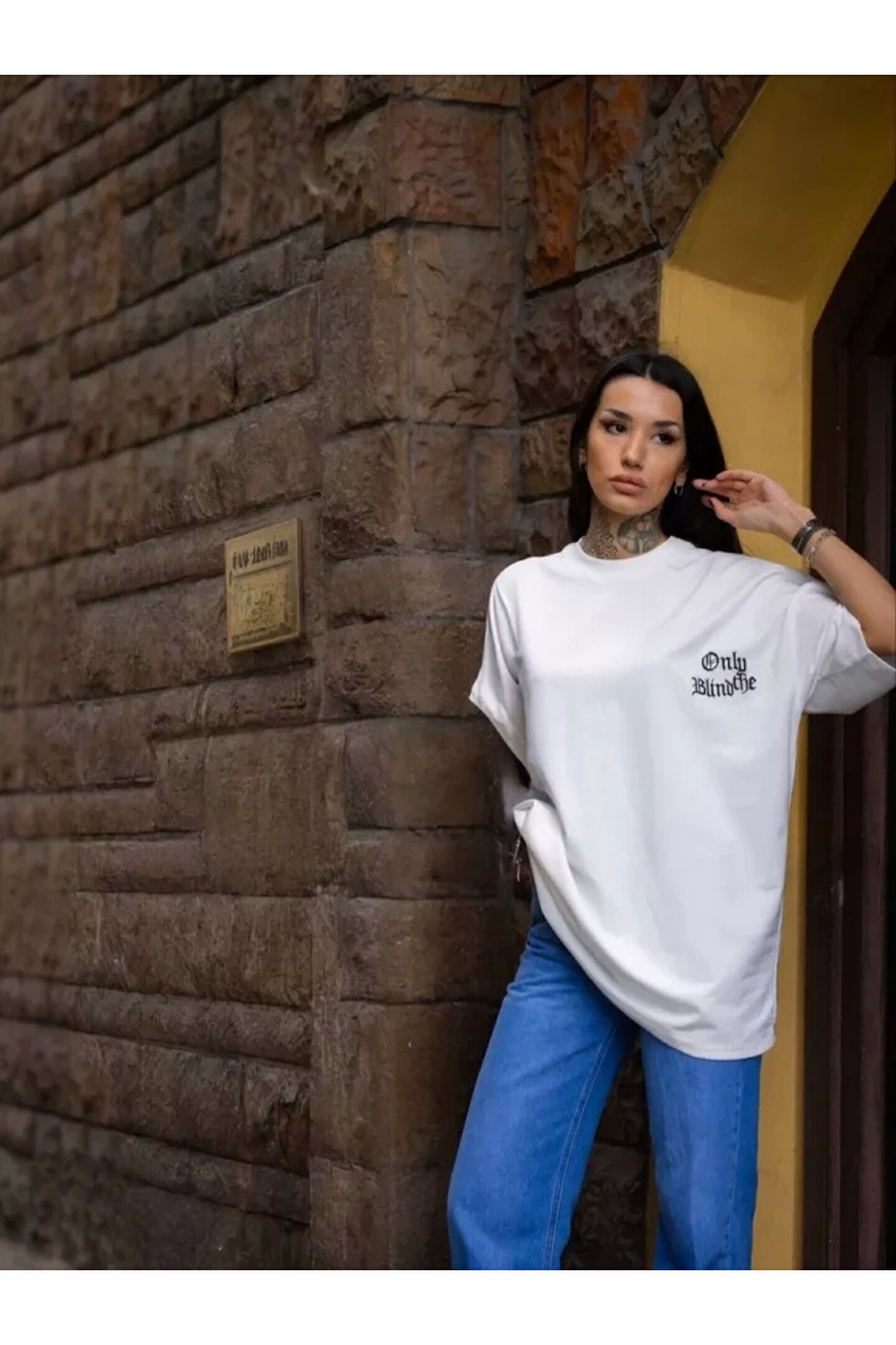 Silerra Unisex Bisiklet Yaka Baskılı Oversize Thirt Beyaz