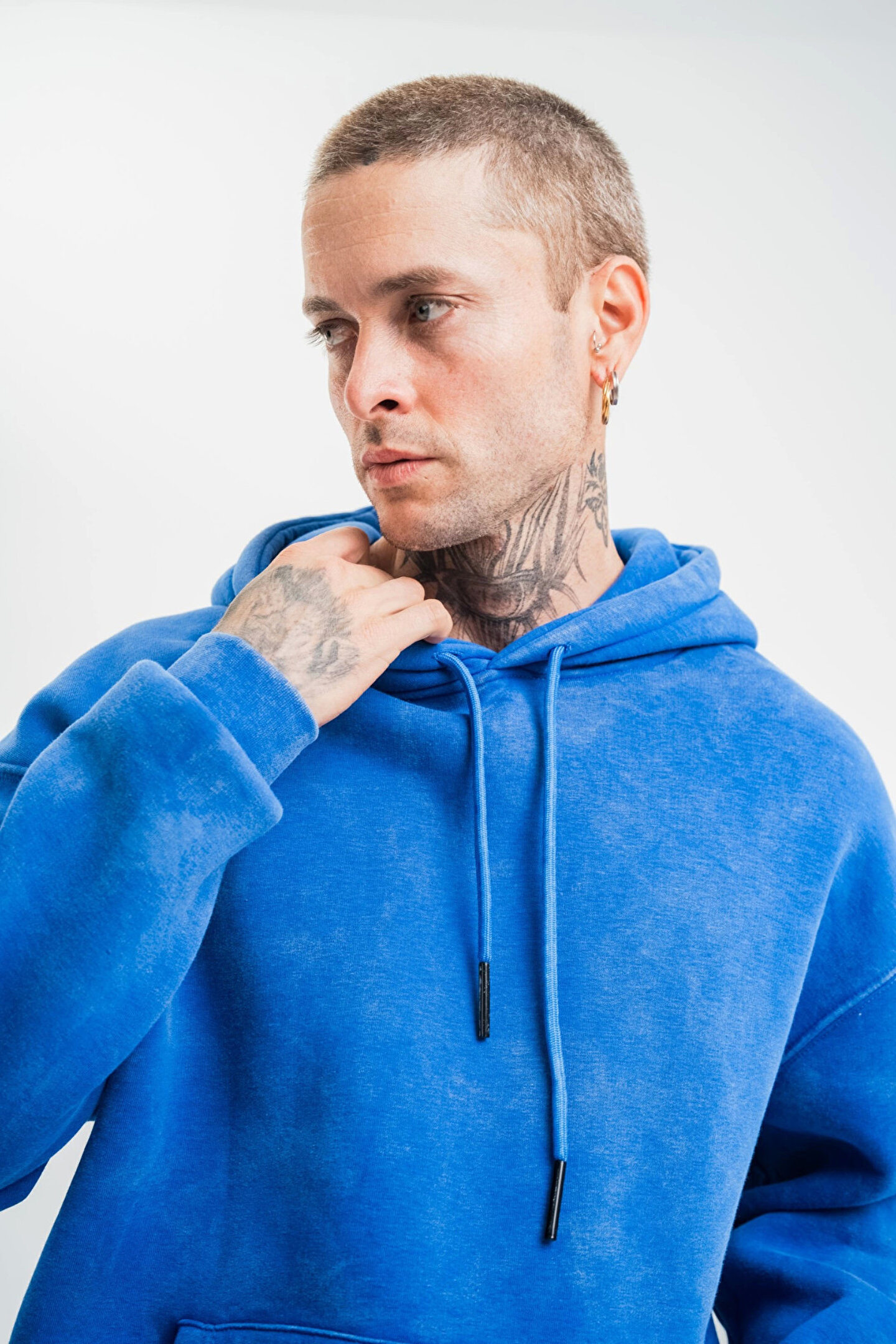 Silerra Unisex Double Oversize Kapşonlu Yıkamalı SweatShirt - Mavi