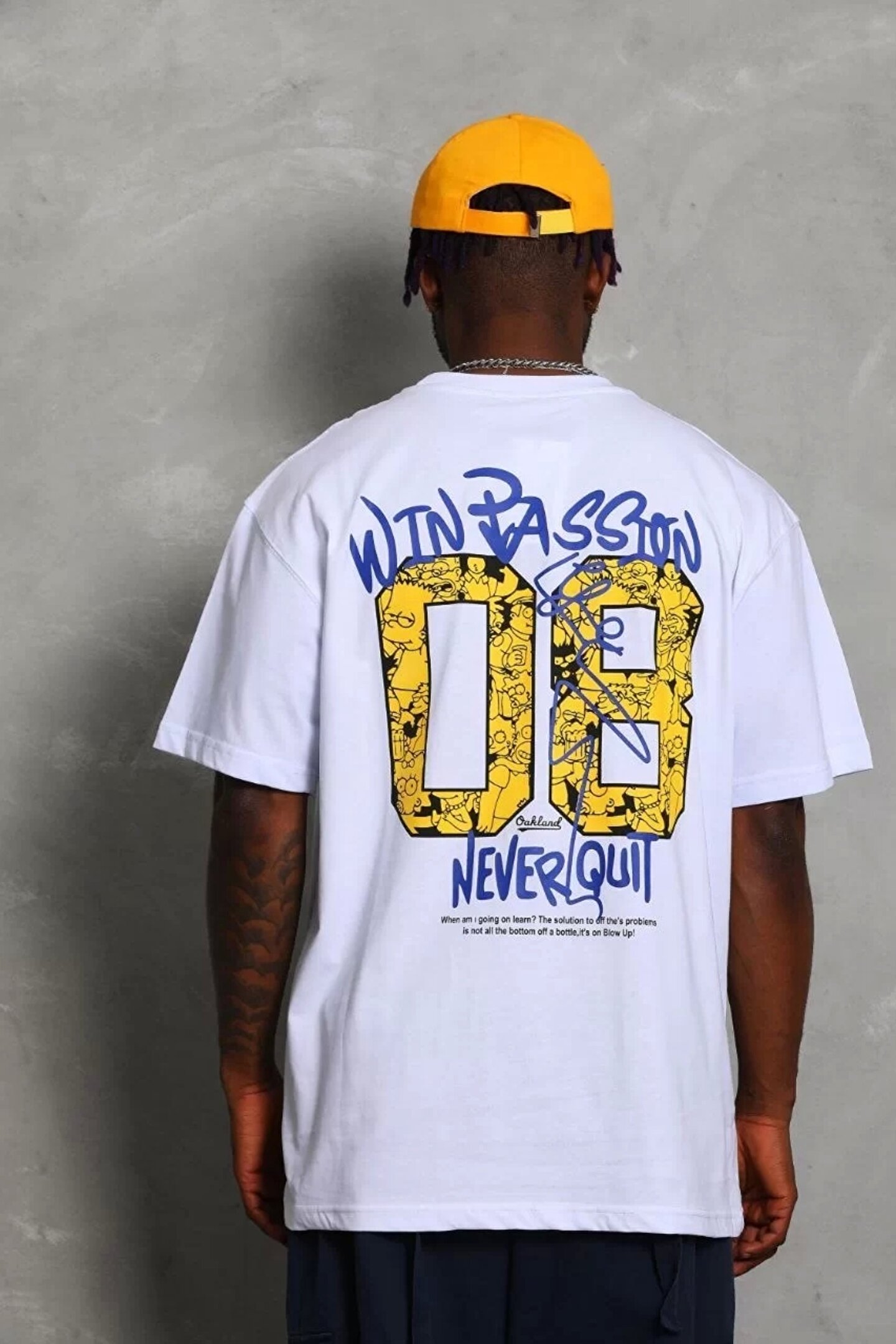 Silerra Unisex Oversize Baskılı Bisiklet Yaka T-Shirt - Beyaz