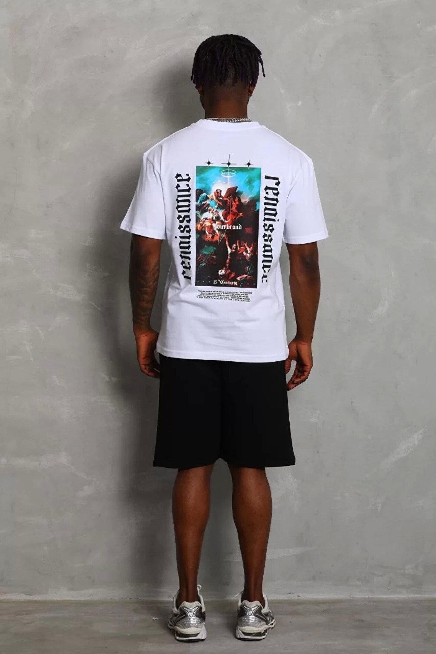 Silerra Unisex Oversize Baskılı Bisiklet Yaka T-Shirt - Beyaz