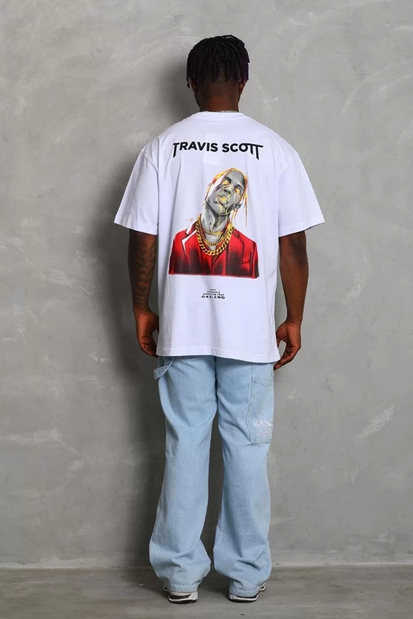 Silerra Unisex Oversize Baskılı Bisiklet Yaka T-Shirt - Beyaz