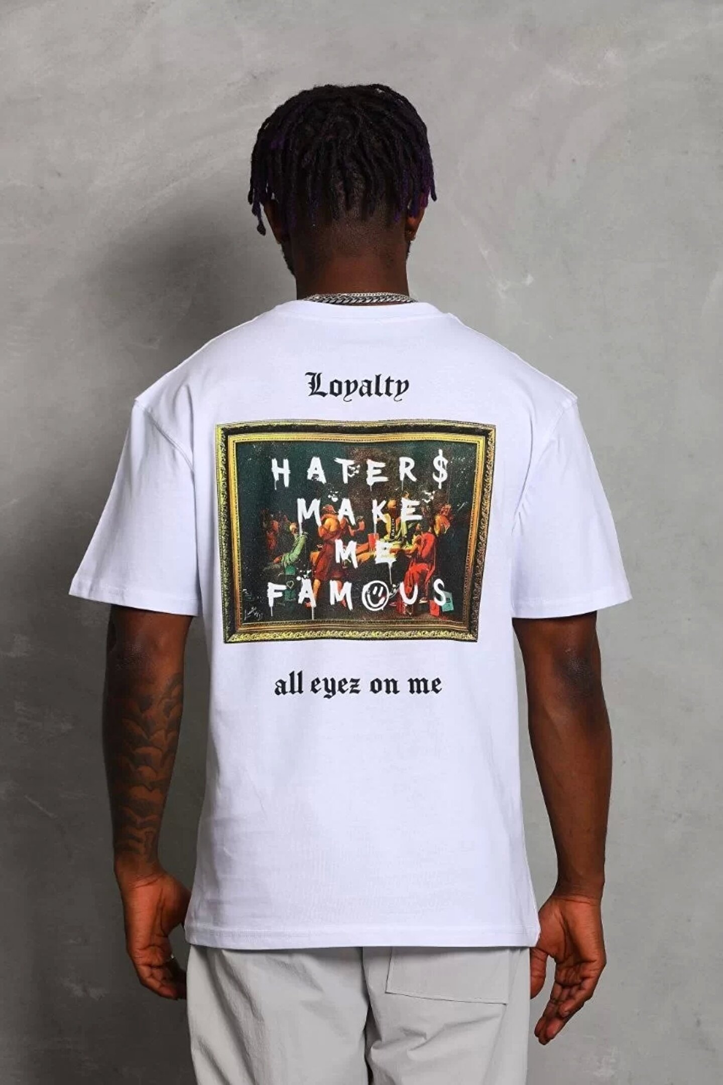 Silerra Unisex Oversize Baskılı Bisiklet Yaka T-Shirt - Beyaz