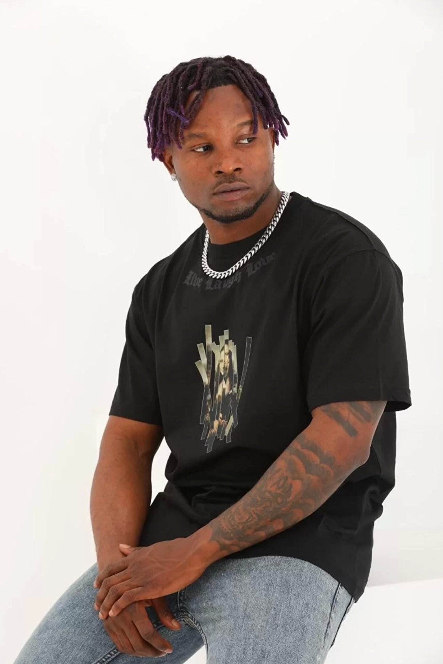 Silerra Unisex Oversize Baskılı Bisiklet Yaka T-Shirt - Siyah
