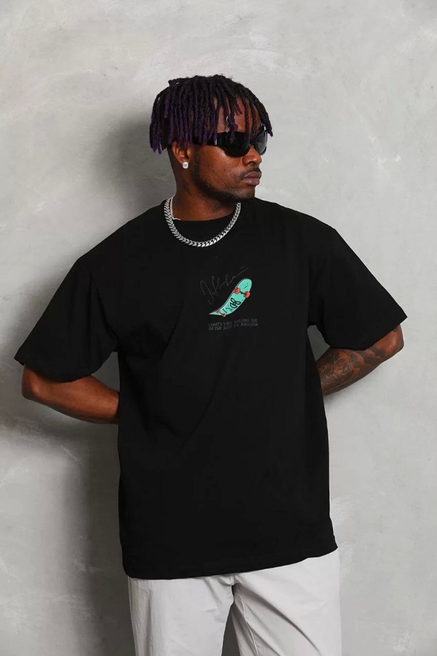 Silerra Unisex Oversize Baskılı Bisiklet Yaka T-Shirt - Siyah