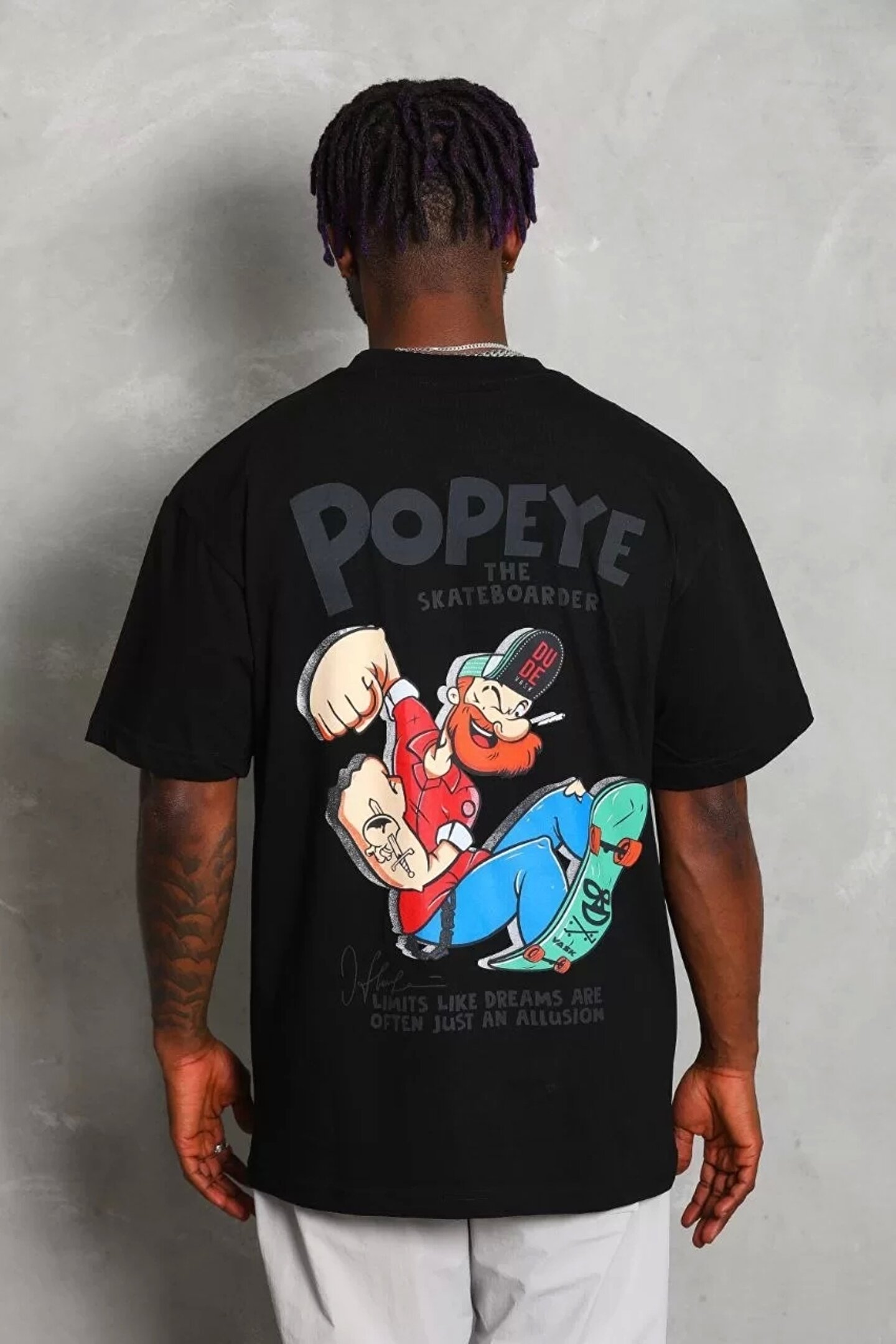 Silerra Unisex Oversize Baskılı Bisiklet Yaka T-Shirt - Siyah