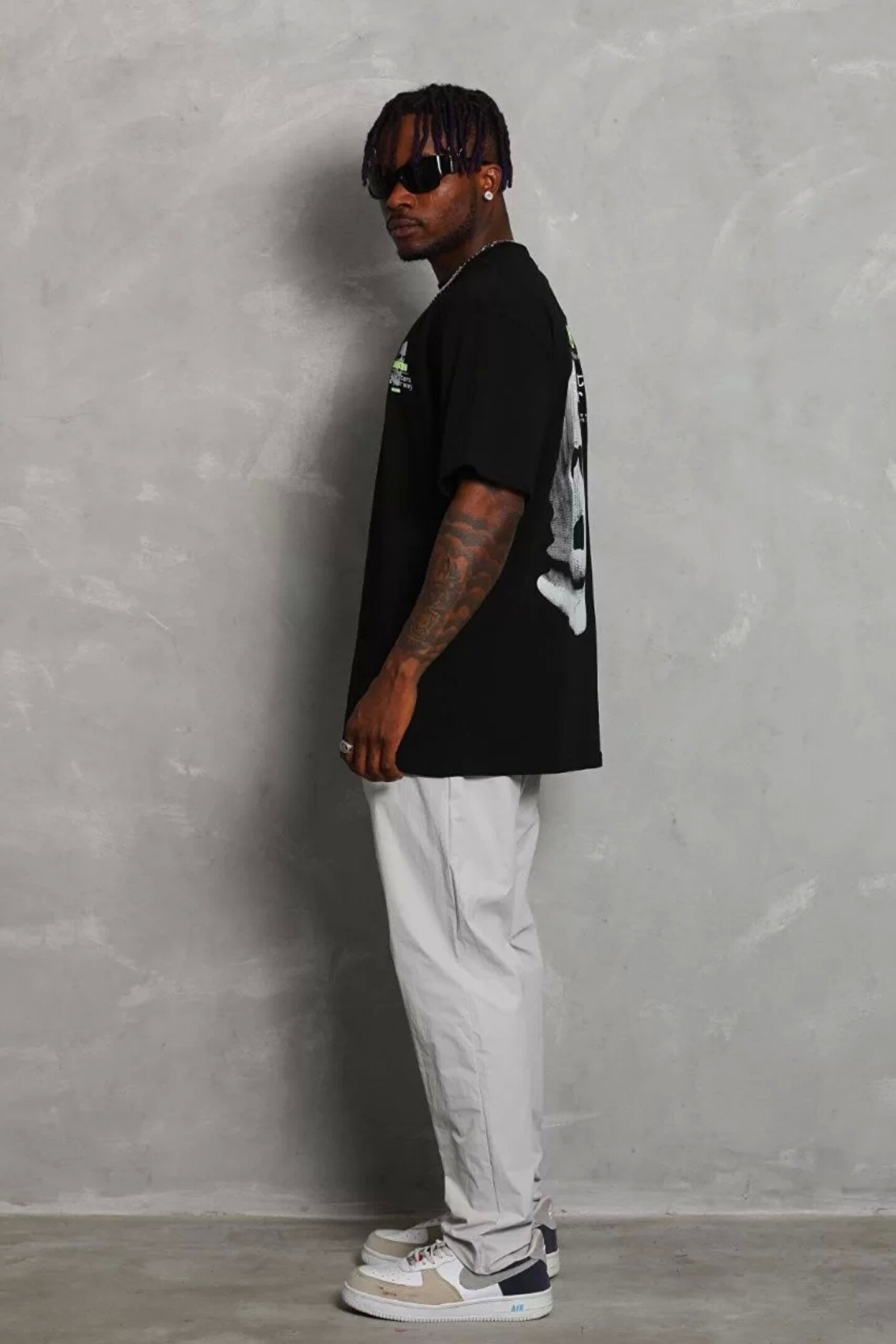Silerra Unisex Oversize Baskılı Bisiklet Yaka T-Shirt - Siyah