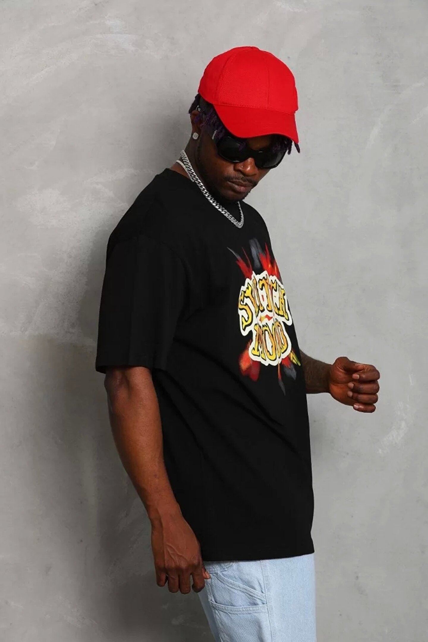Silerra Unisex Oversize Baskılı Bisiklet Yaka T-Shirt - Siyah