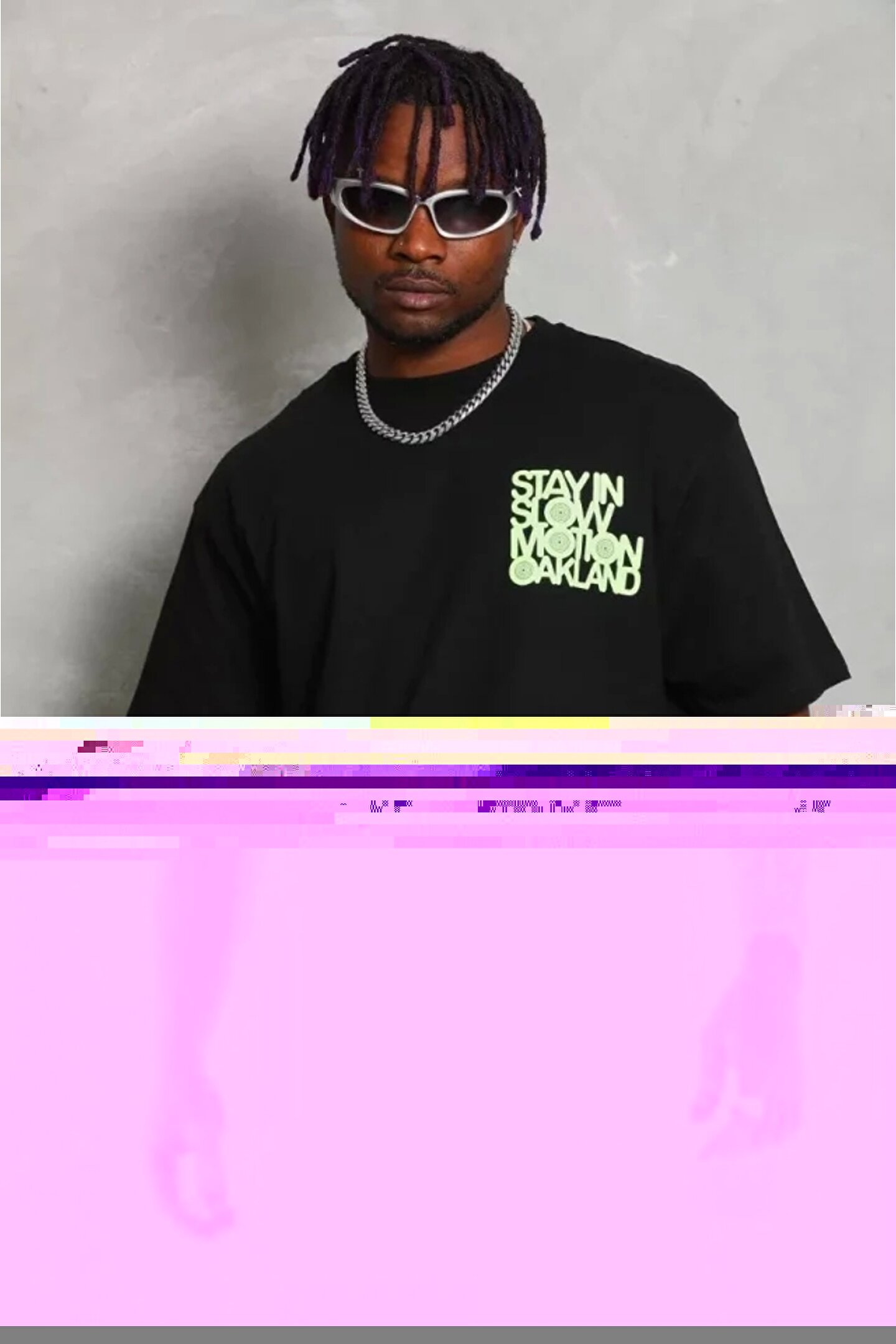 Unisex Oversize Baskılı Bisiklet Yaka T-Shirt - Siyah