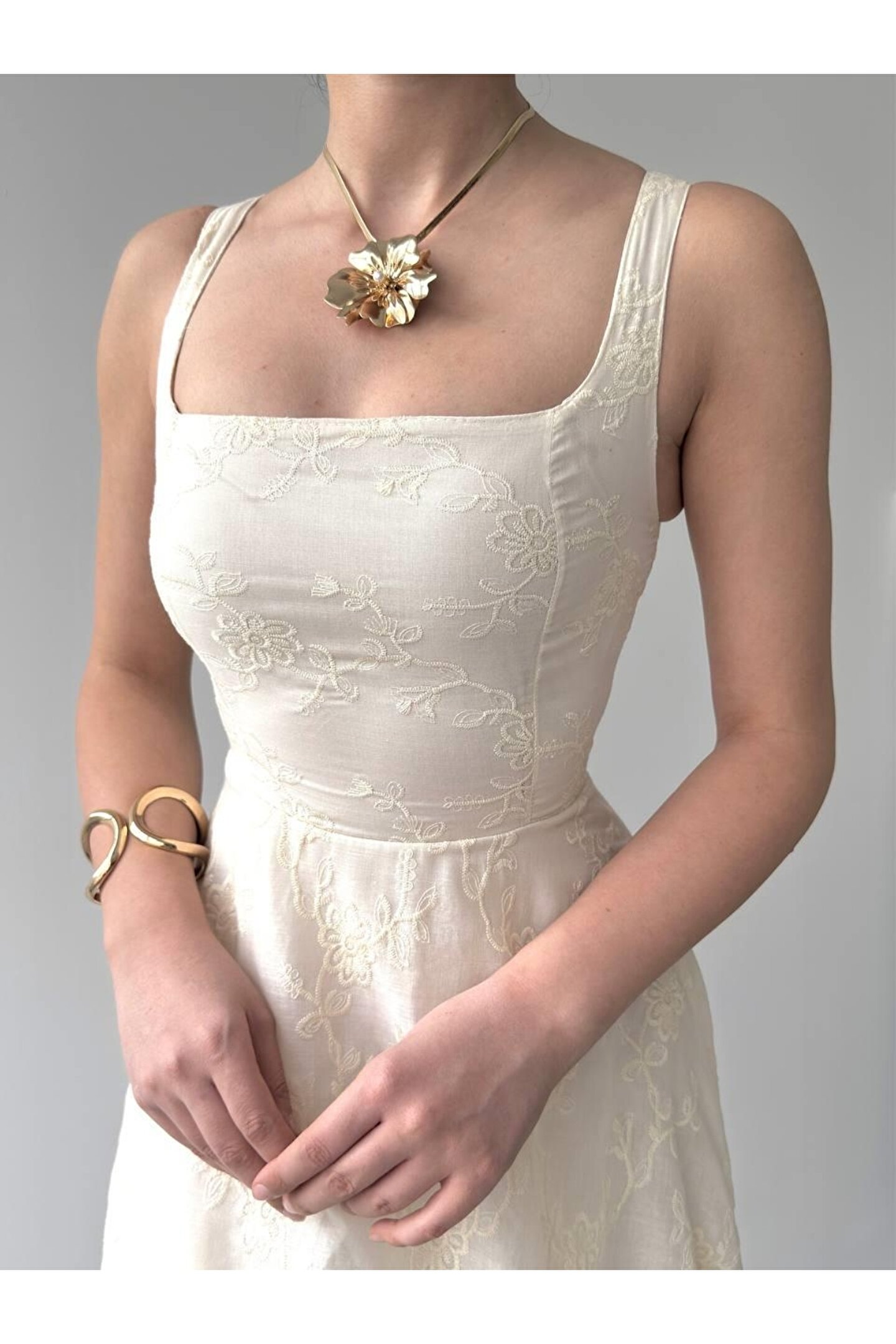 Cuper Çiçek Detaylı Elbise