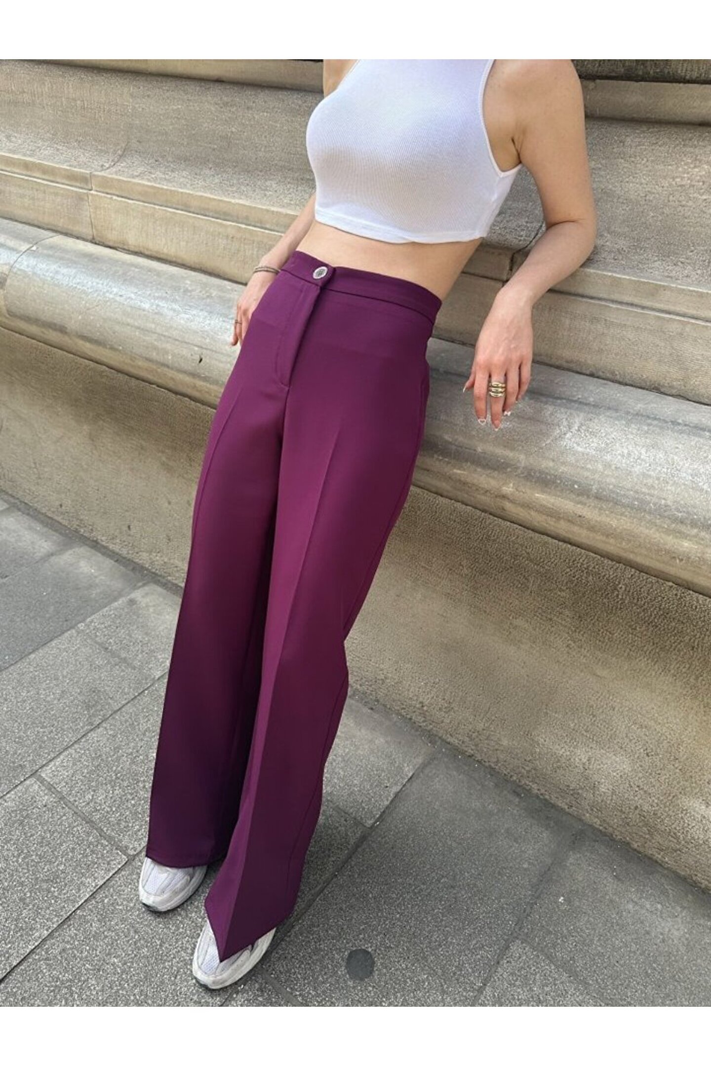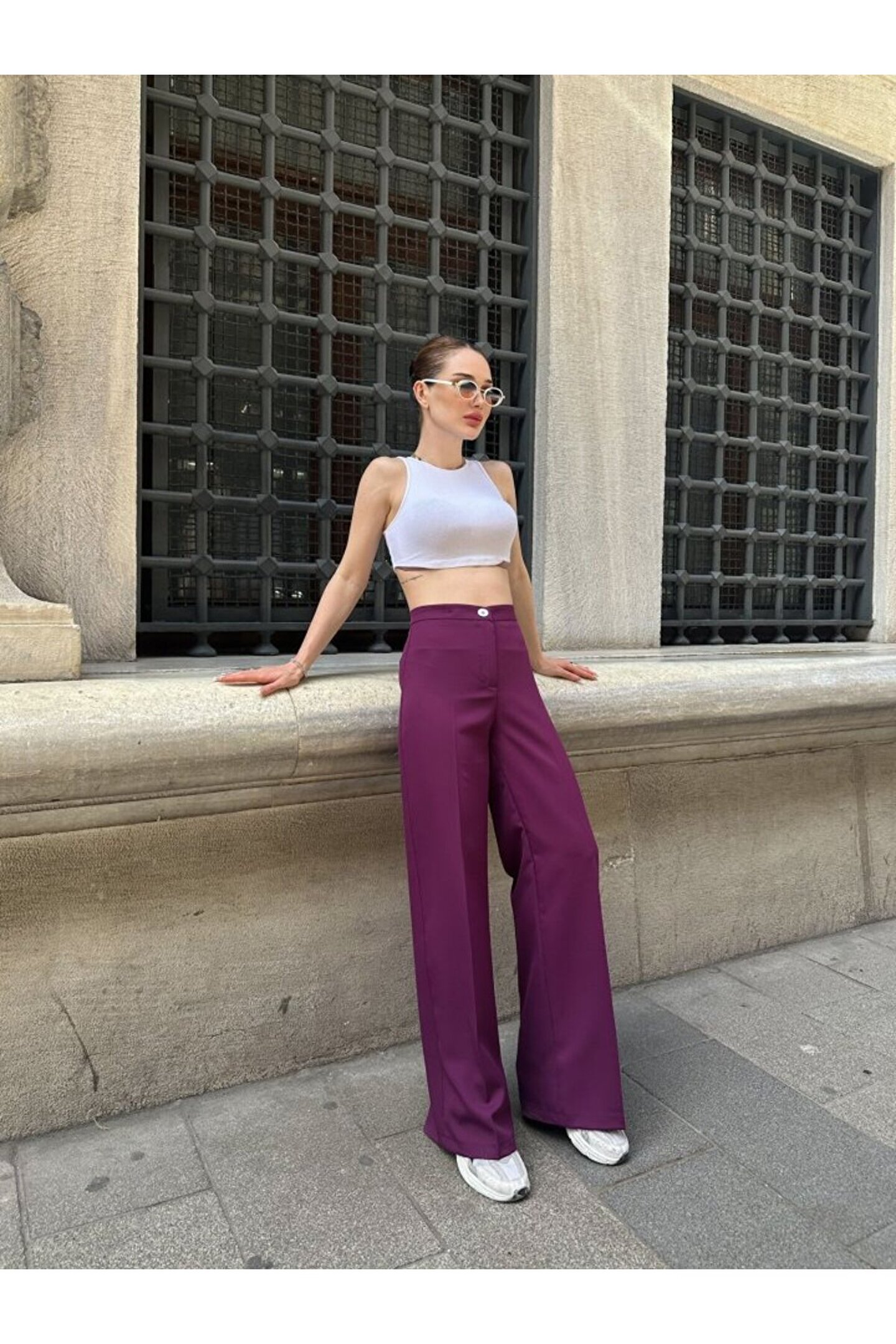 Yüksek Bel Palazzo Metal DüğmePantolon