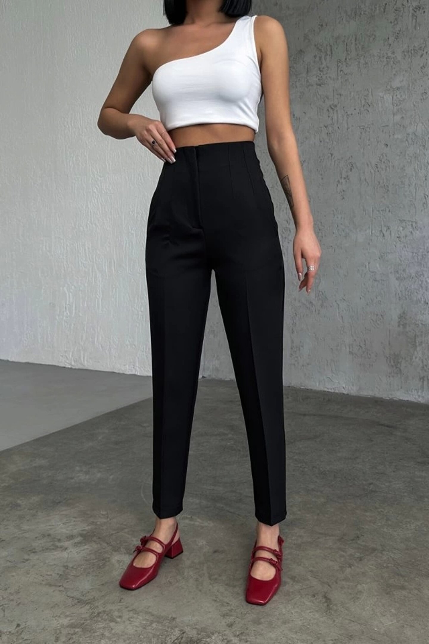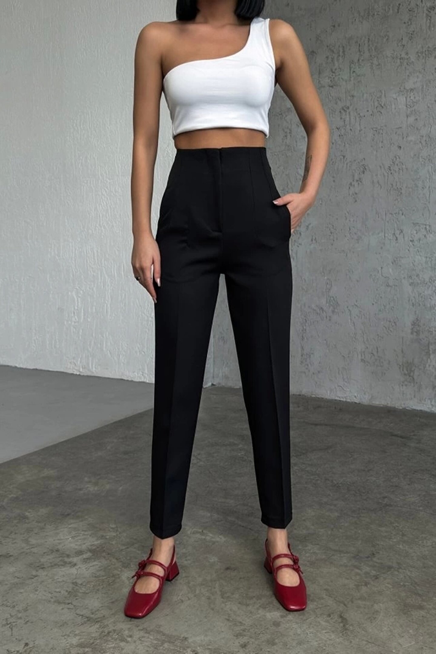Yüksek Bel Pensli Pantolon