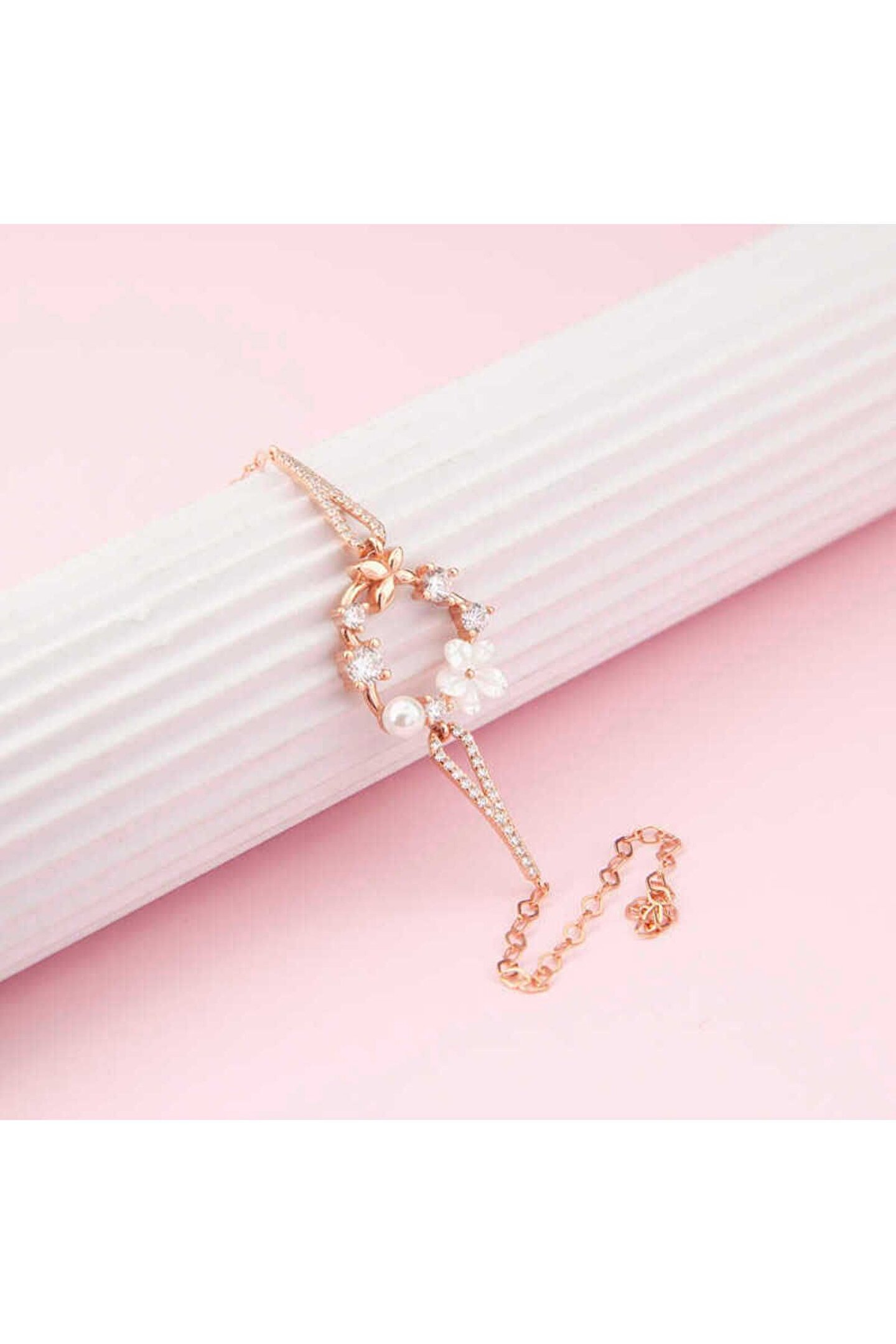 Gümüş Rose Kalp Manolya Çiçeği Kadın Bileklik