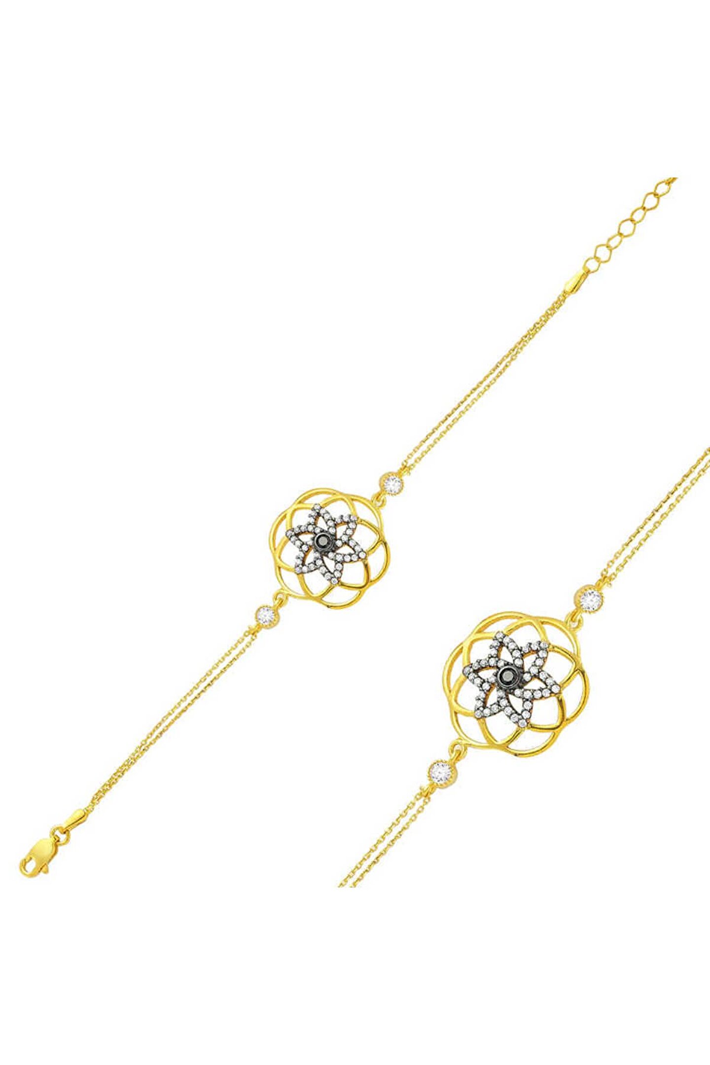 Samur Parti Parti Aksesuar & Kostüm 925 Ayar Gümüş Gold Sarı Yaşam Çiçeği Bileklik