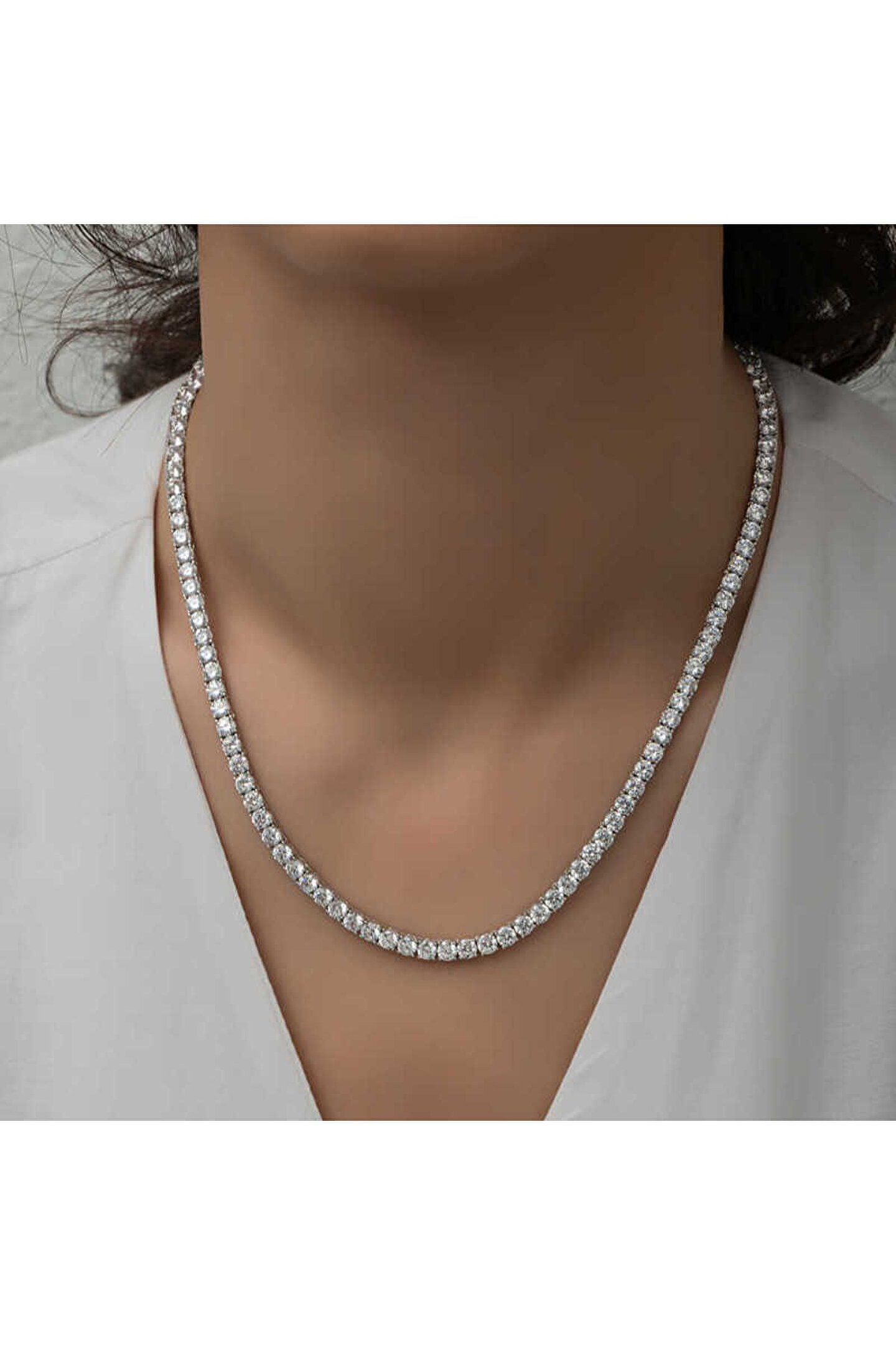 Samur Parti Parti Aksesuar & Kostüm Gümüş 6 Mm Beyaz Taşlı Su Yolu Kadın Kolye