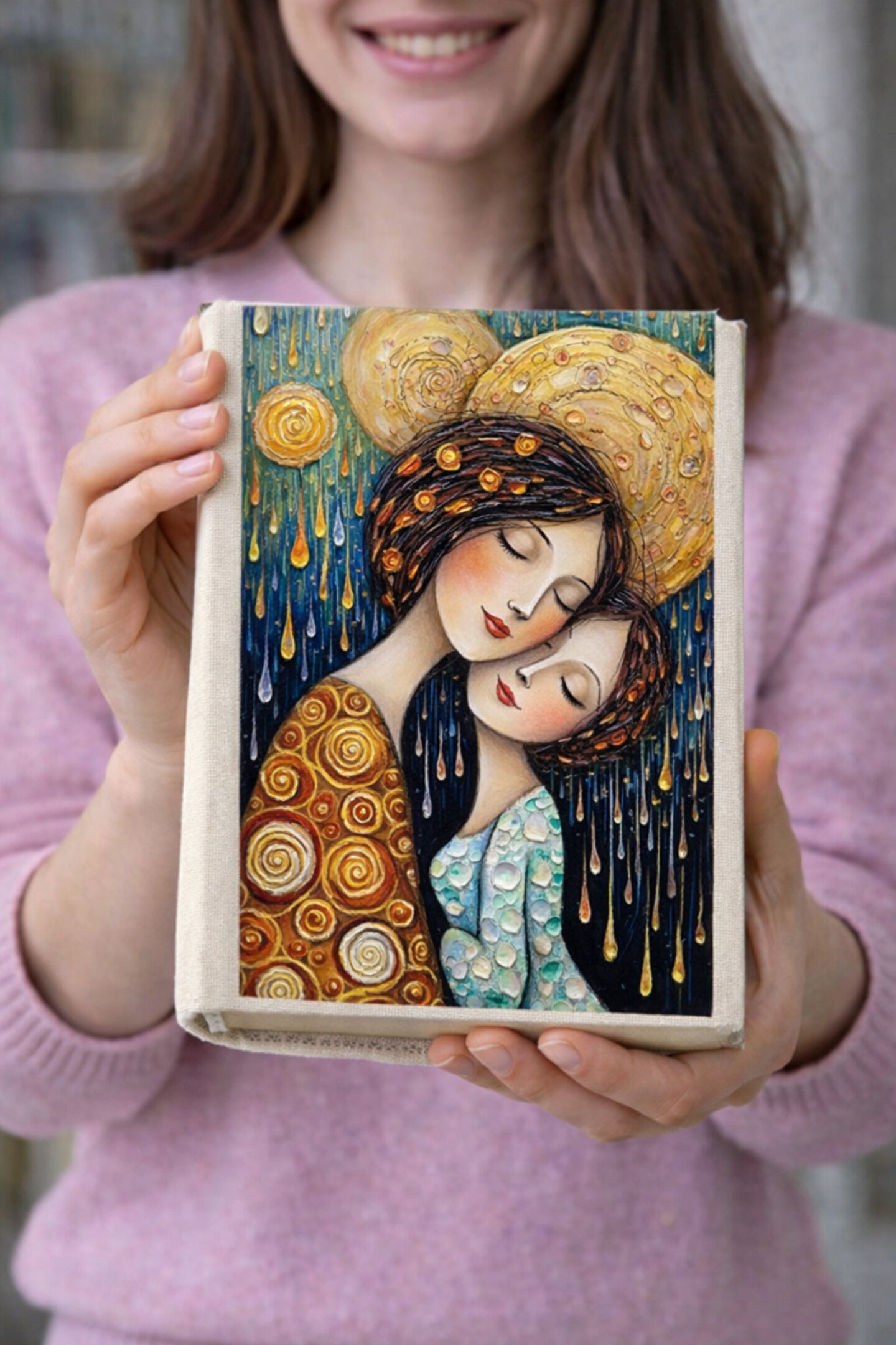 Şımartan Anne Kız Desenli Bez Kitap Kılıfı – Baskılı Kumaş Kitap Kabı, Kitap Koruyucu