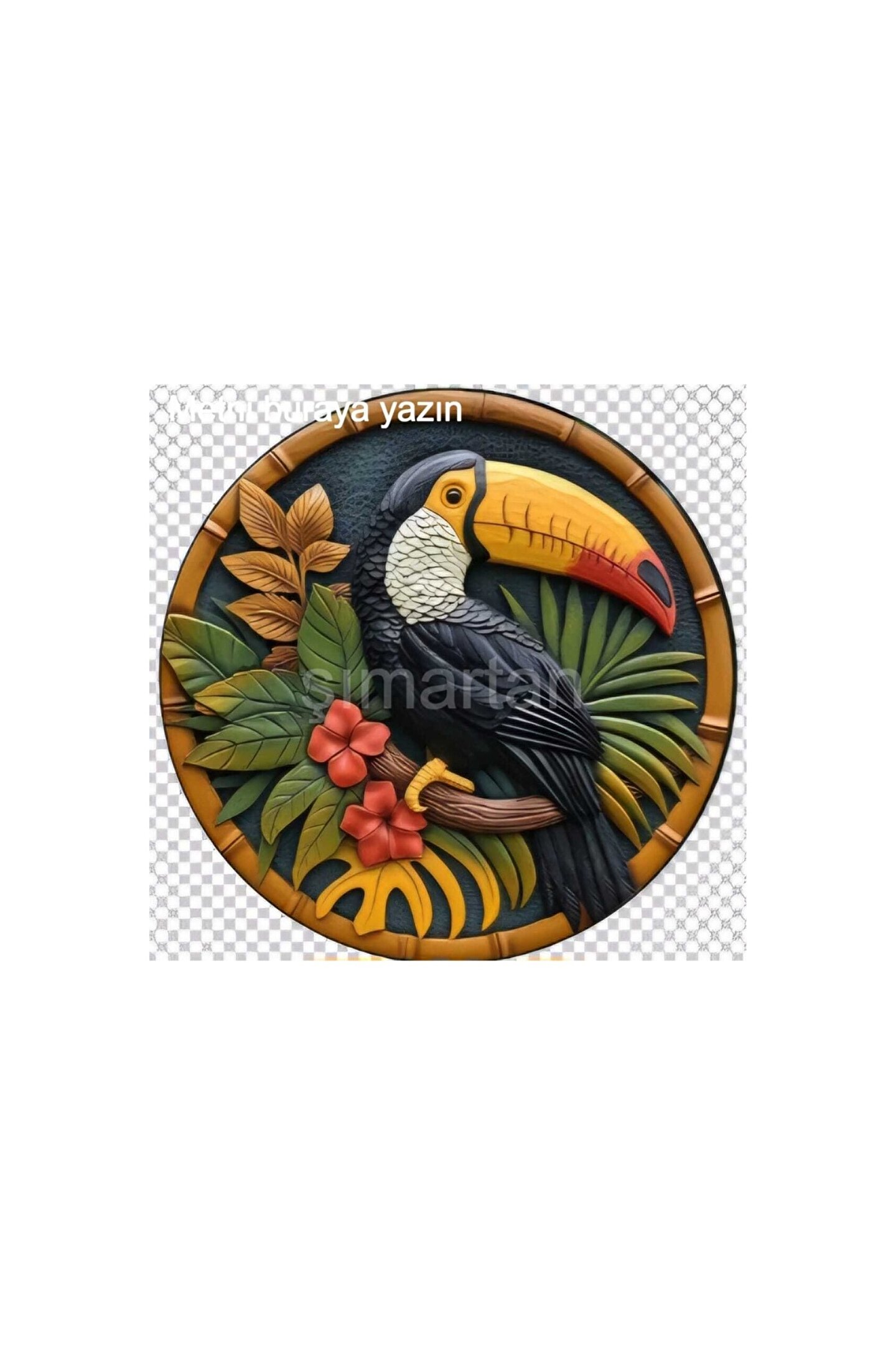 ŞANS GETİRDİĞİNE İNANILAN , UĞURLU TUKAN KUŞU KALITELI MDF ÜZERİNE BASKI YAPILMIŞTIR.; RENKLER KALİTELİ BASKI 28 CM ÇAPINDA - Tamamen MDF , ahşap malzemeden yapılmış Şans Getiren Uğurlu Tukan Kuşu, evinizin dekorasyonuna sıcak ve otantik bir dokunuş katıyor.; - Tek parça halinde gelen bu ürün, kolay montaj avantajı sunarak mekanınızda hızlıca yer buluyor.; - Tropikal temalı tasarımıyla dikkat çeken Şans Getiren Uğurlu Tukan Kuşu, evinizin atmosferini canlandırarak pozitif enerjiyi davet ediyor.