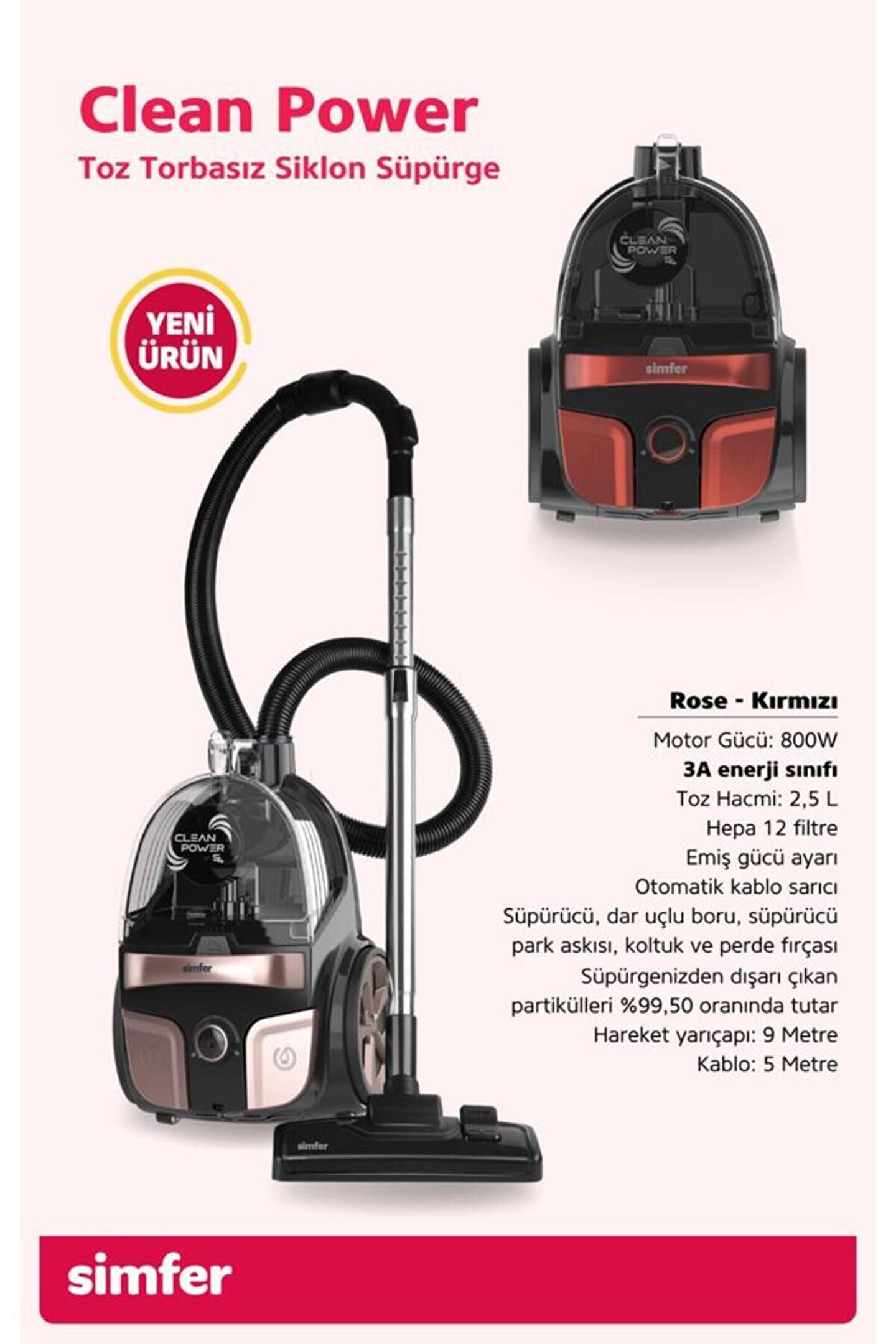 SK-6302 800 W Toz Torbasız Elektrikli Süpürge-kırmızı