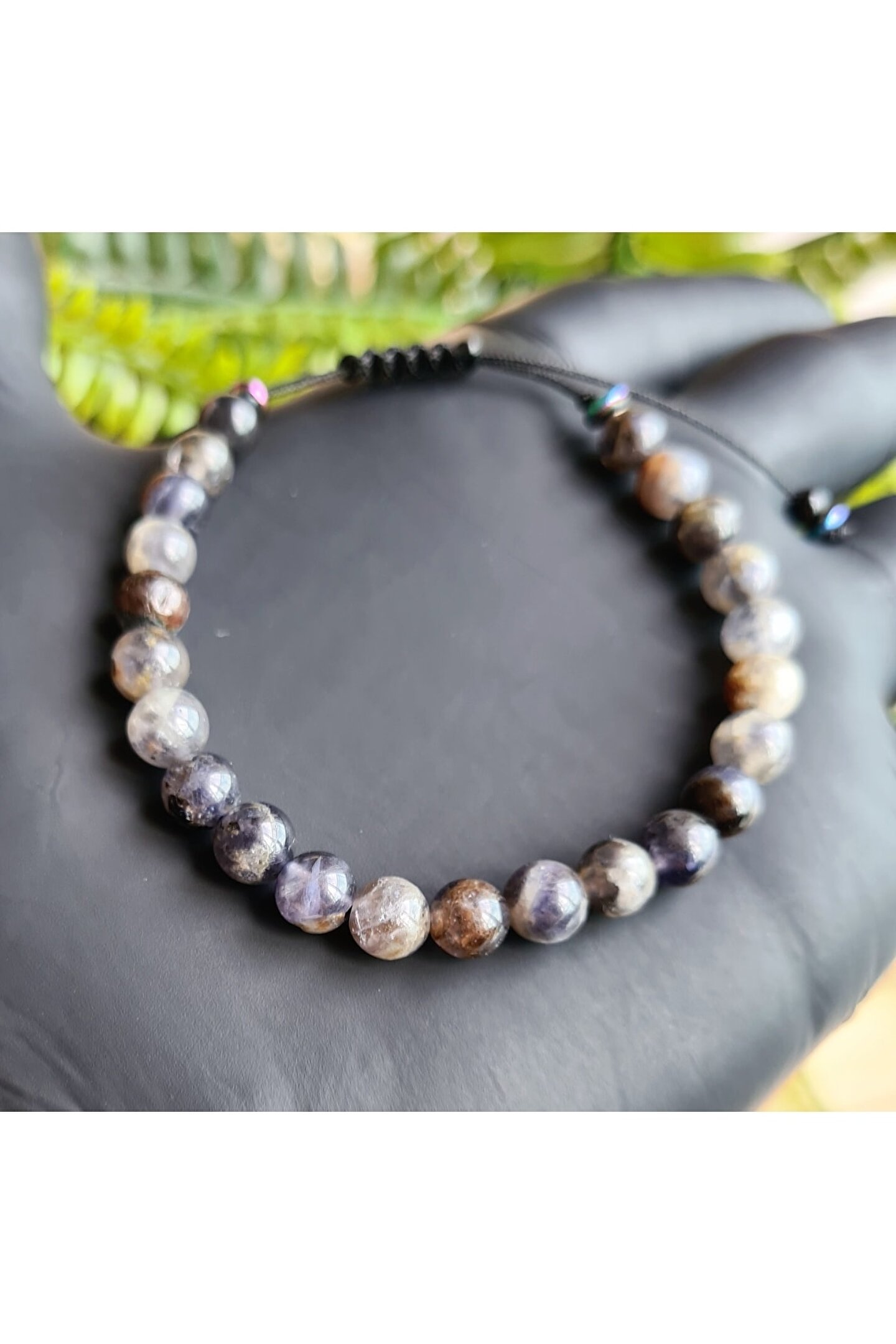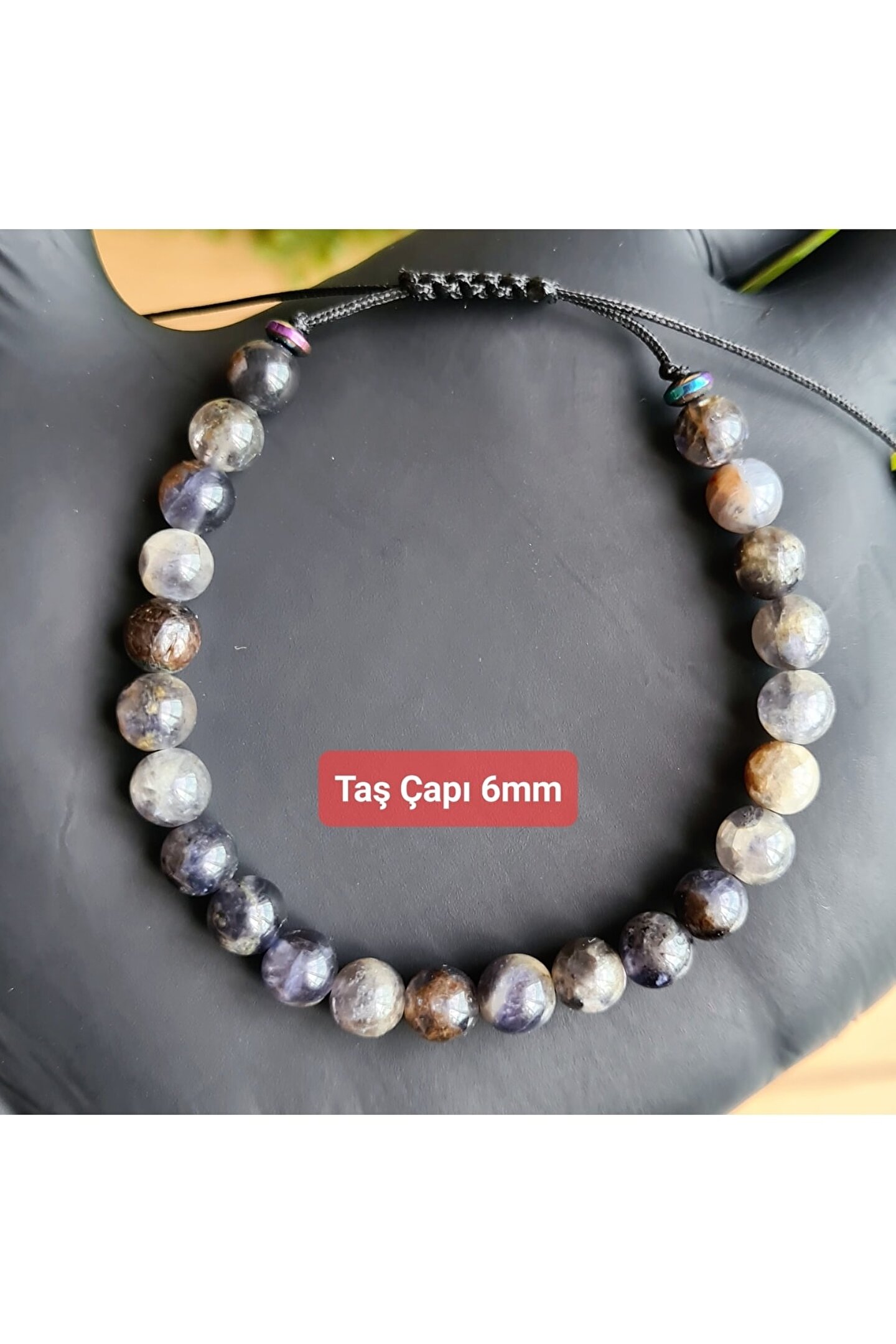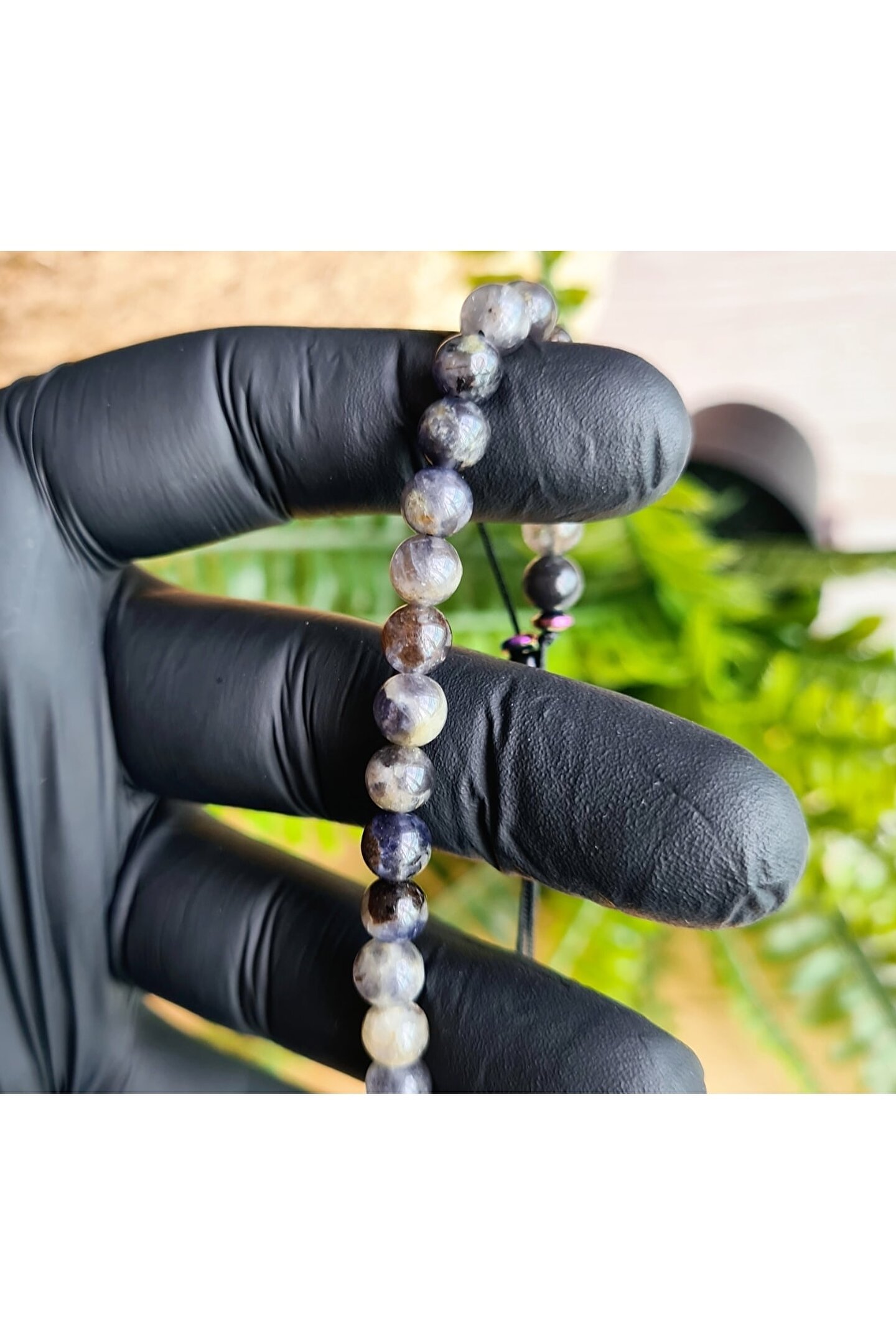 El yapımı tasarımıyla öne çıkan bu bileklik, benzersiz ve otantik bir görünüm sunar; Doğal taş kullanımı sayesinde her bileklik, doğanın saf güzelliğini parmaklarınıza taşır; Iyolit taşı, bilekliğinize zarif bir dokunuş katarken, aynı zamanda şıklığınızı tamamlar; El işçiliğiyle üretilen bu ürün, hem kaliteyi hem de estetiği ön planda tutar;