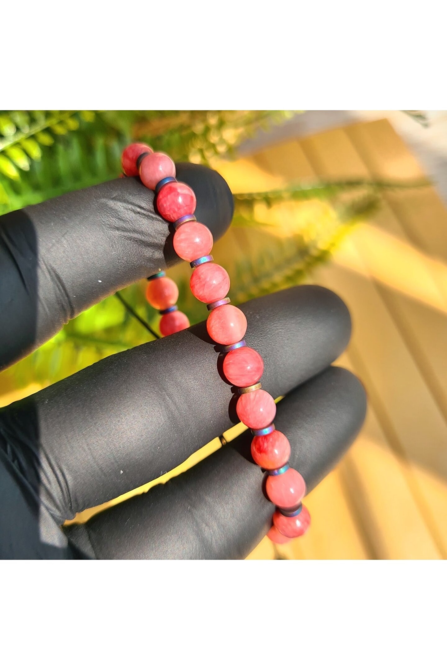 El yapımı tasarımıyla öne çıkan bu bileklik, her bir detayı özenle işlenmiş doğal taşlardan oluşur; Doğal taş kullanımı sayesinde, her bileklik benzersiz ve eşsiz bir görünüm sunar; Rodokrozit taşı, bilekliğe zarif bir parlaklık ve renk tonları kazandırarak dikkat çekici bir stil oluşturur; El işçiliğiyle üretilen bu ürün, hem kaliteyi hem de estetiği ön planda tutan bir aksesuar seçeneği sunar;