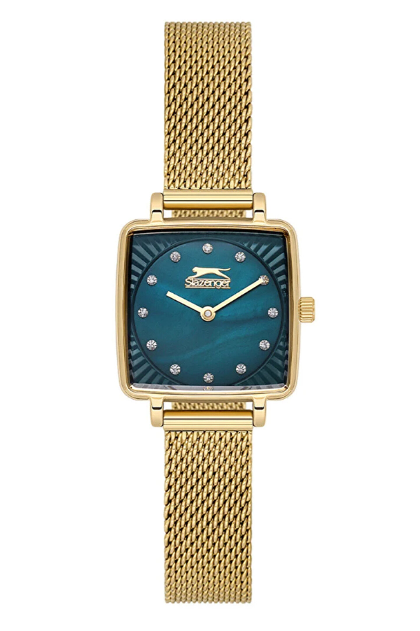 Kasa Çapı : 25 mm Kasa Rengi : Gold Kasa Şekli : Yuvarlak Kayış Rengi : Gold Kayış Tipi : Çelik / Hasır Kadran Rengi : yeşil Makine Tipi : Quartz-Pilli Cam Tipi : Mineral Su Geçirmezlik : 3 atm Çalışma Tipi : Analog