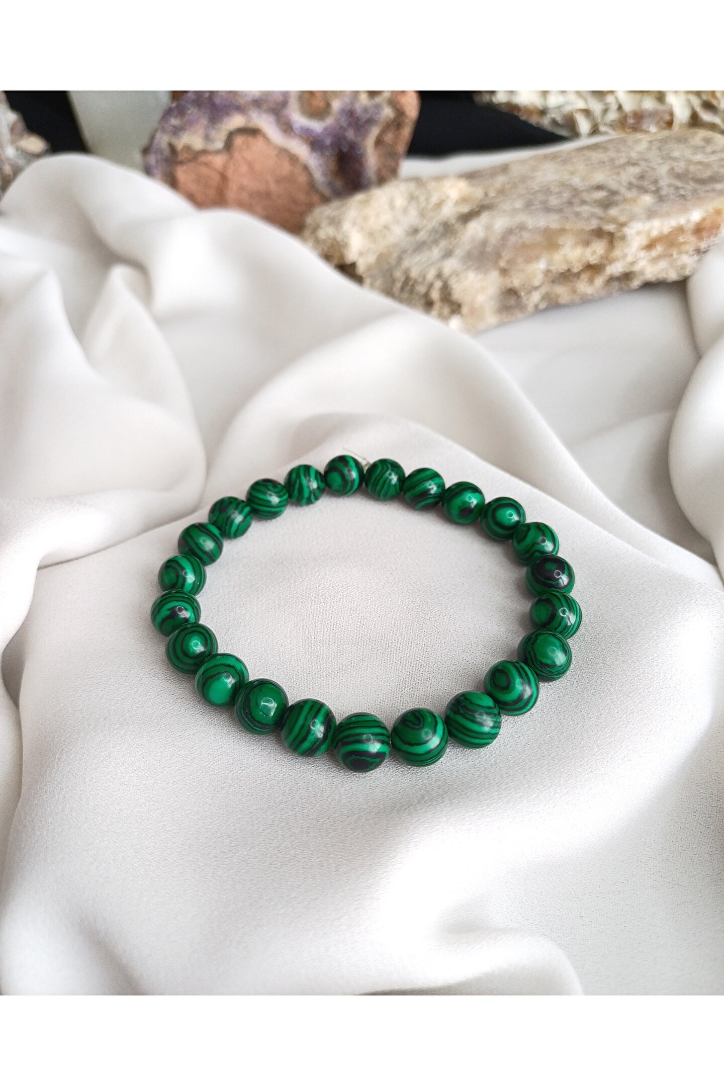 Malahit taşının özellikleri; Enerji taşıdır. Sakinleştirici bir taş olması özelliğiyle uyumanıza yardımcı olur ve rahatlama sağlar. İçerisinde Bakır elementi bulunur, bakırın iletkenliğinden dolayı bedendeki negatif elektriği temizler.