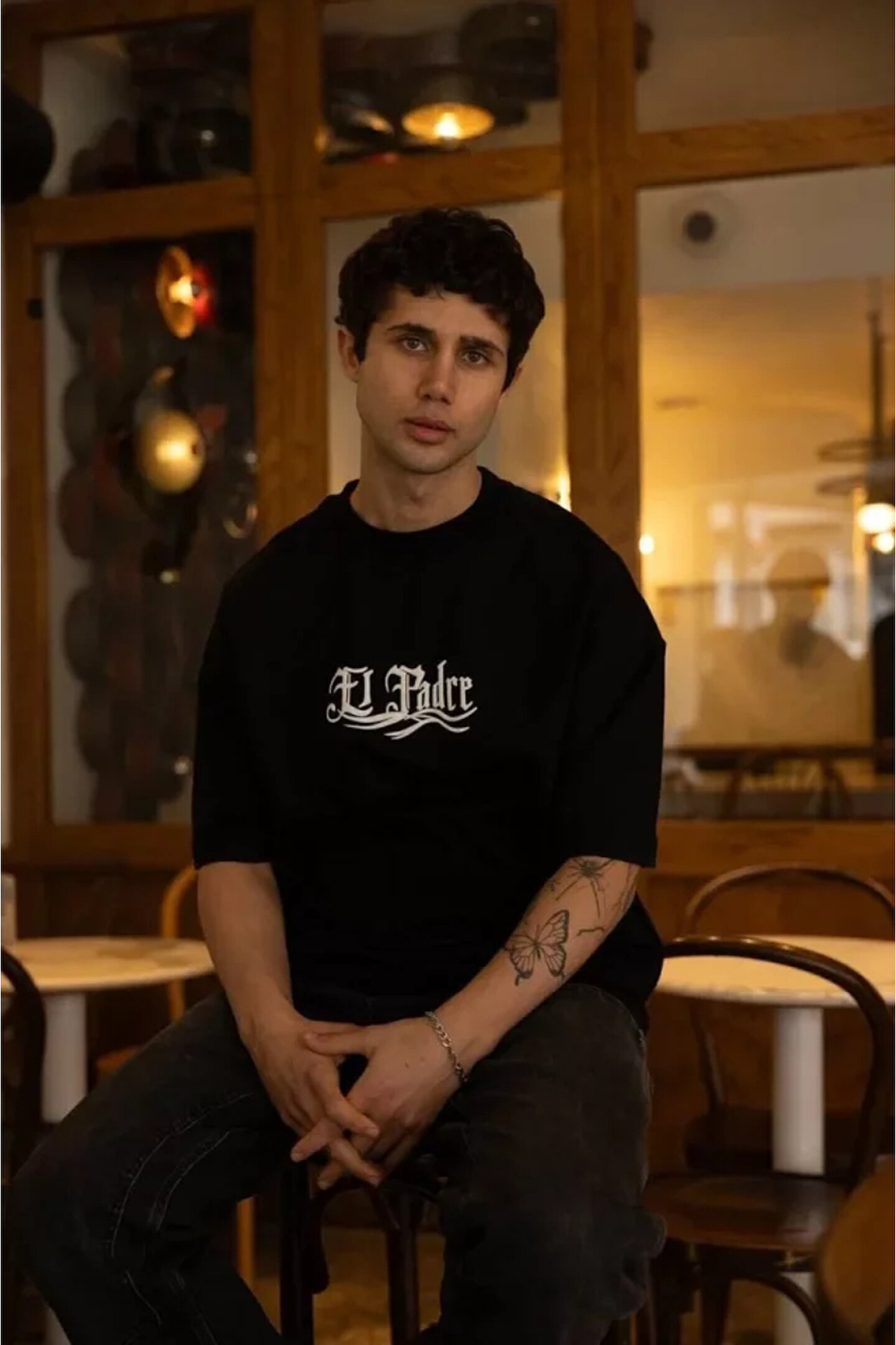 MyTerrax Unisex Bisiklet Yaka Baskılı Oversize T-Shirt - Siyah