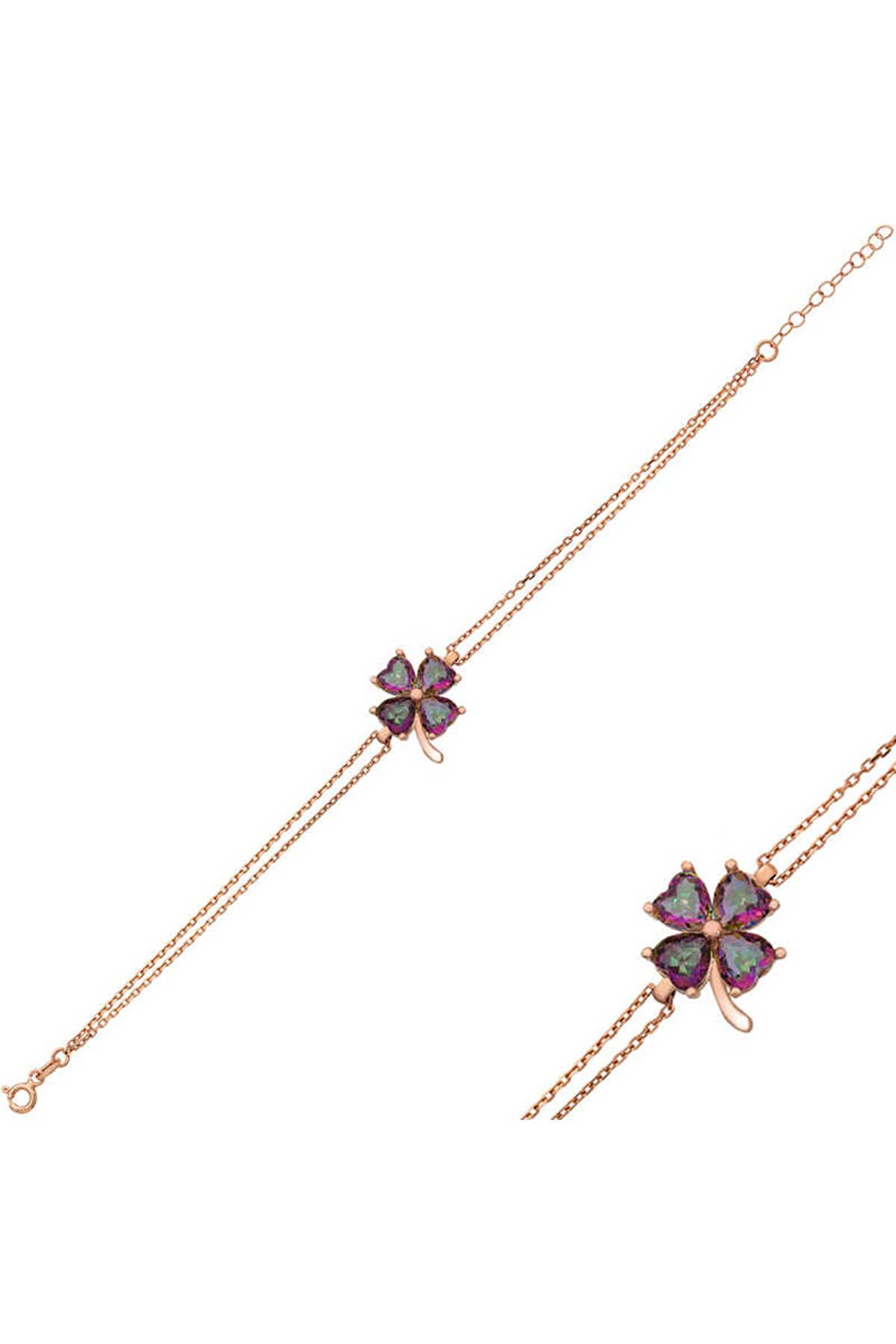 Samur Parti Parti Aksesuar & Kostüm 925 Ayar Gümüş Rose Mistik Topaz Yonca Bileklik