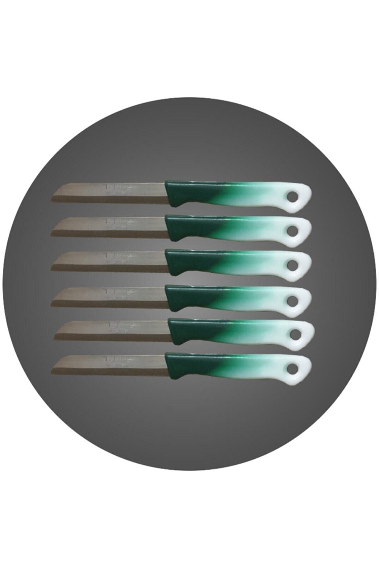 6’lı Tırtıklı Ağız Büyük Geçişli Koyu Yeşil Meyve Bıçağı 1004