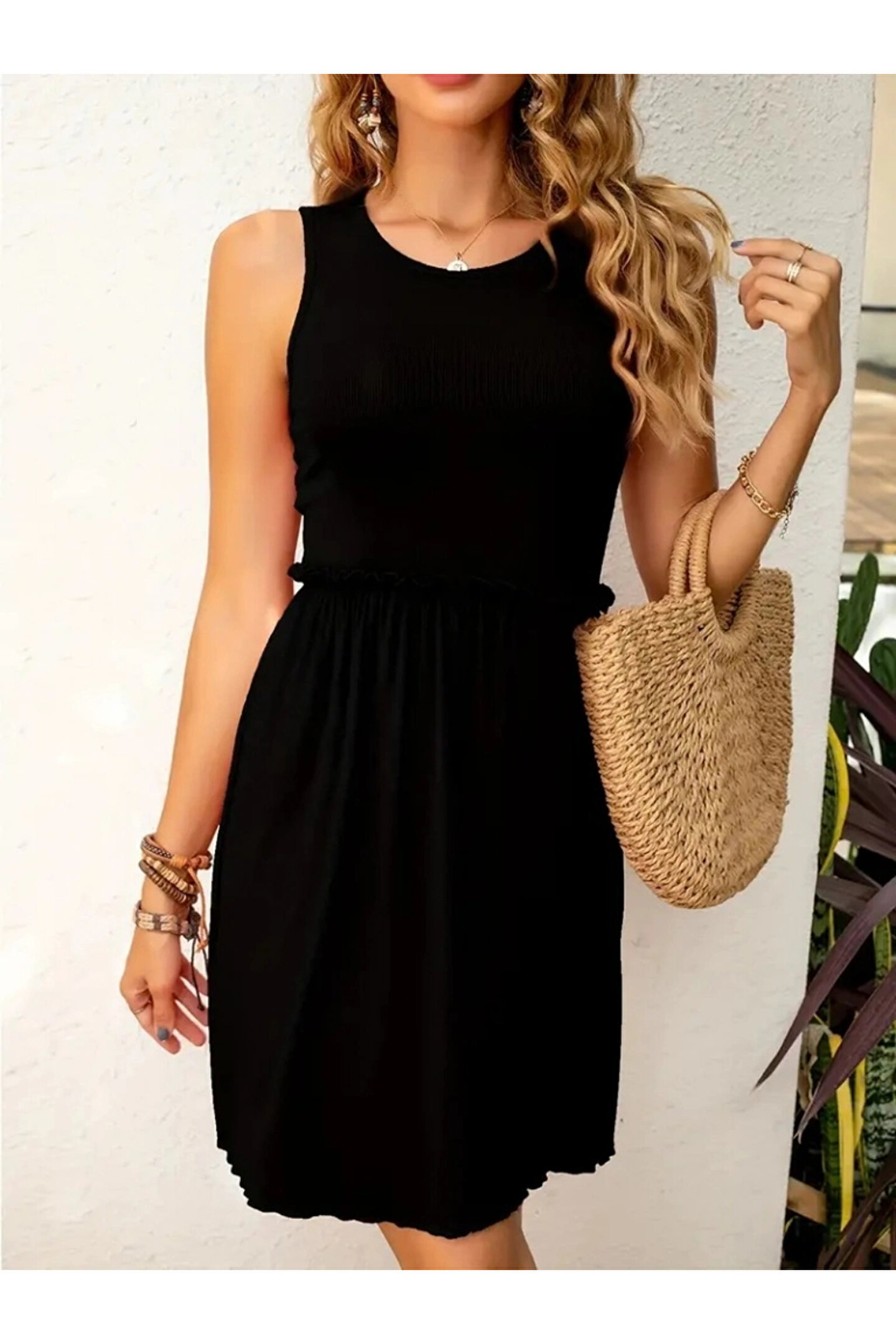 Kadın Kolsuz Bel Lastik Ve Büzgü Detay Viskon Mini Elbise