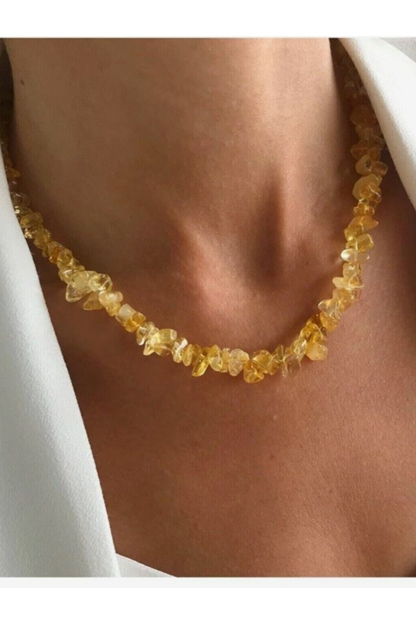 Doğal taş kullanımı, her bir kolyenin benzersiz ve otantik bir görünüm kazanmasını sağlar; Modern tasarımıyla hem kadın hem de erkekler için uygun, şık ve zamansız bir aksesuar seçeneği sunar; Sitrin taşı, kolyenin parlaklığını ve estetik değerini artırarak dikkat çekici bir stil oluşturur;