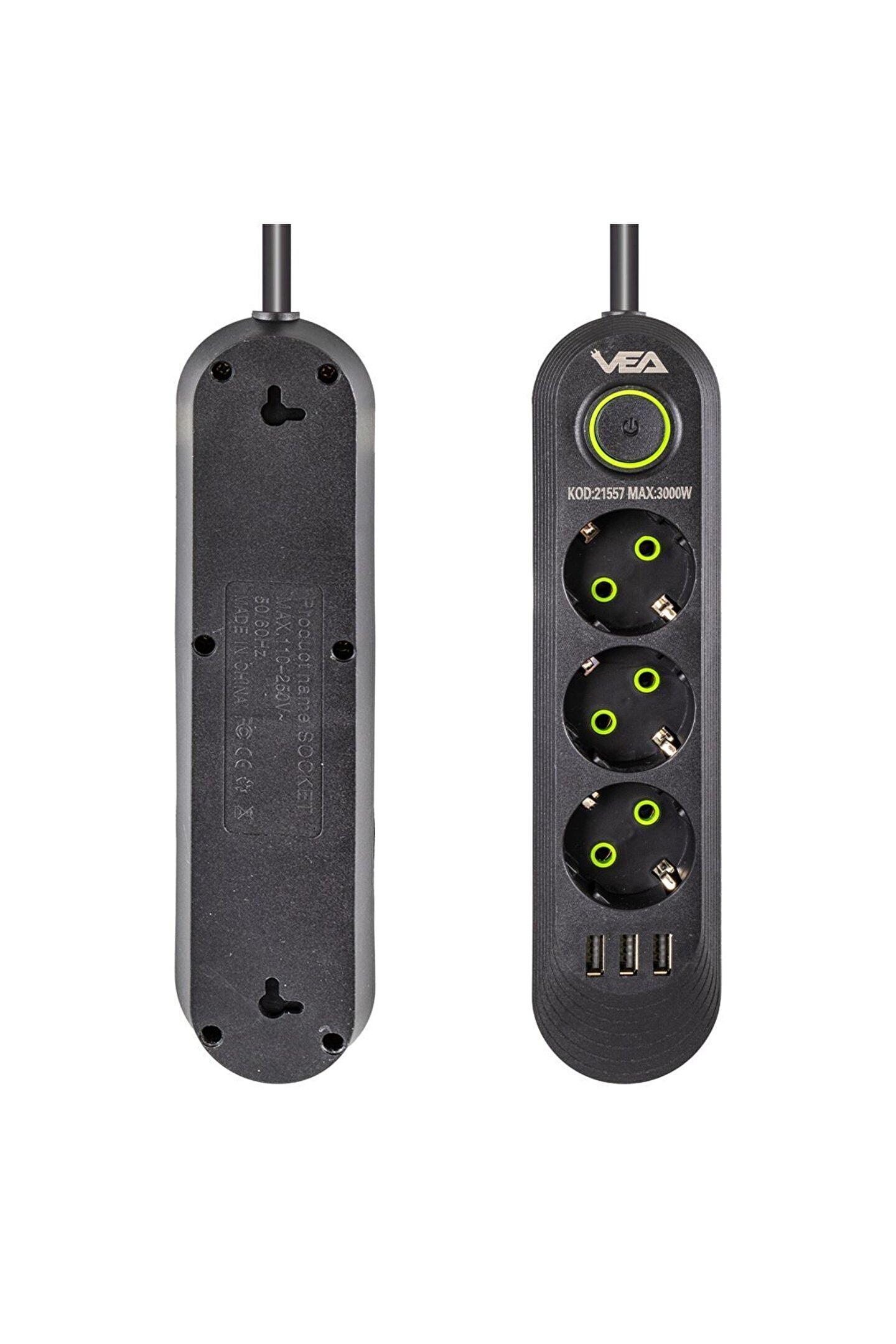 STOREMAX bydx 3LÜ 1.5 METRE KABLOLU 3 USBLİ SİYAH AKIM KORUMALI PRİZ BAKIR Uyumlu KABLO HARİCİ GÜÇ