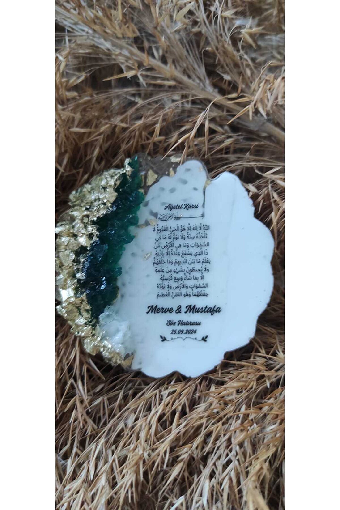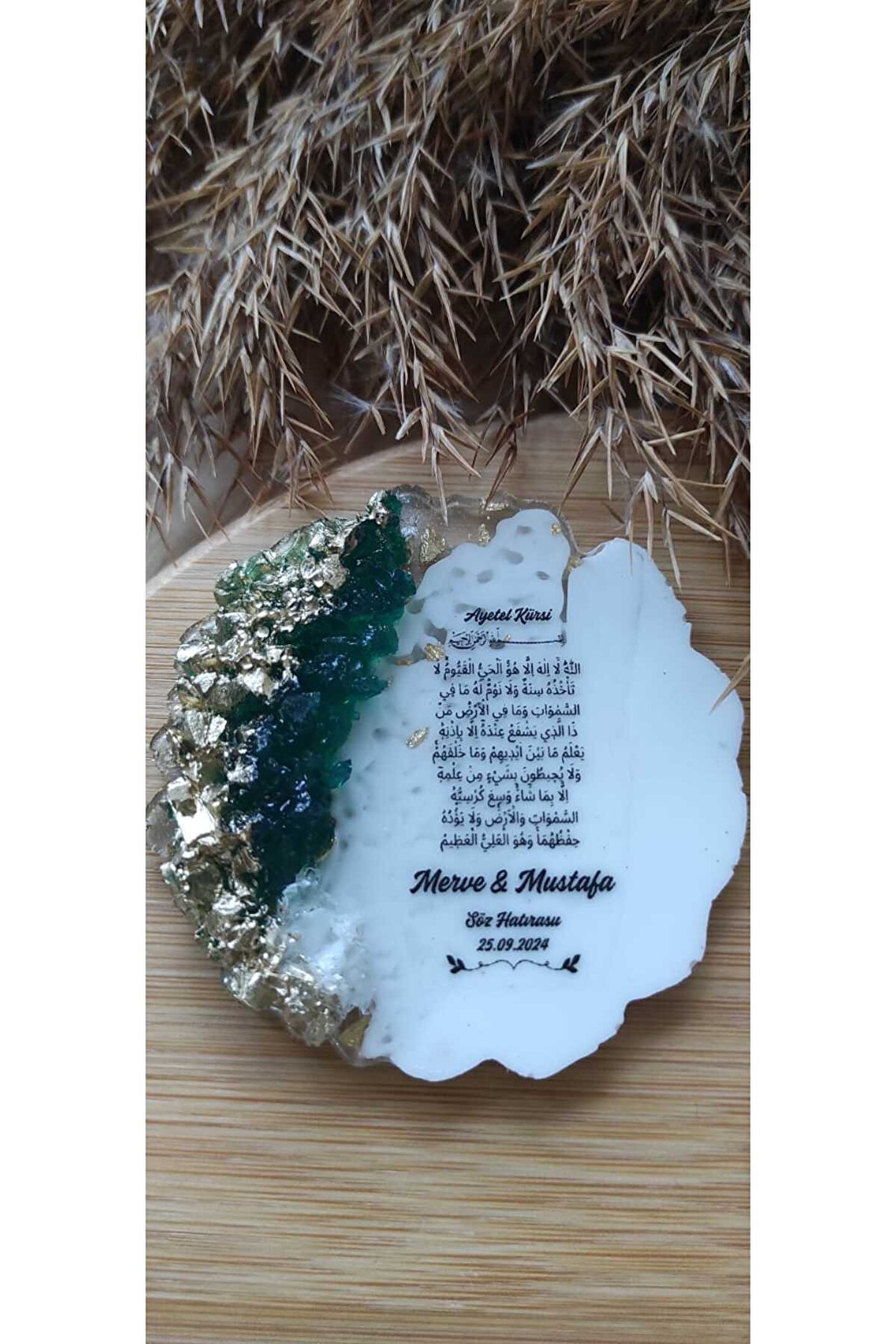 20 Adet ; Epoksi yeşil/gold rengi kabartma taş detaylı magnet ; Kişiye özel tasarım kaliteli Ayet-el Kürsi baskı hatıra magneti ; Her ürün tek tek jelatinlenerek gönderilecektir ; Alıcının siparişi oluşturduktan sonra 24 saat içinde sipariş numarası ile özel not-isim-tarih gibi taleplerini satıcıya sor kısmından iletmelidir, aksi durumda magnetler baskısız olarak gönderim yapılacaktır ;