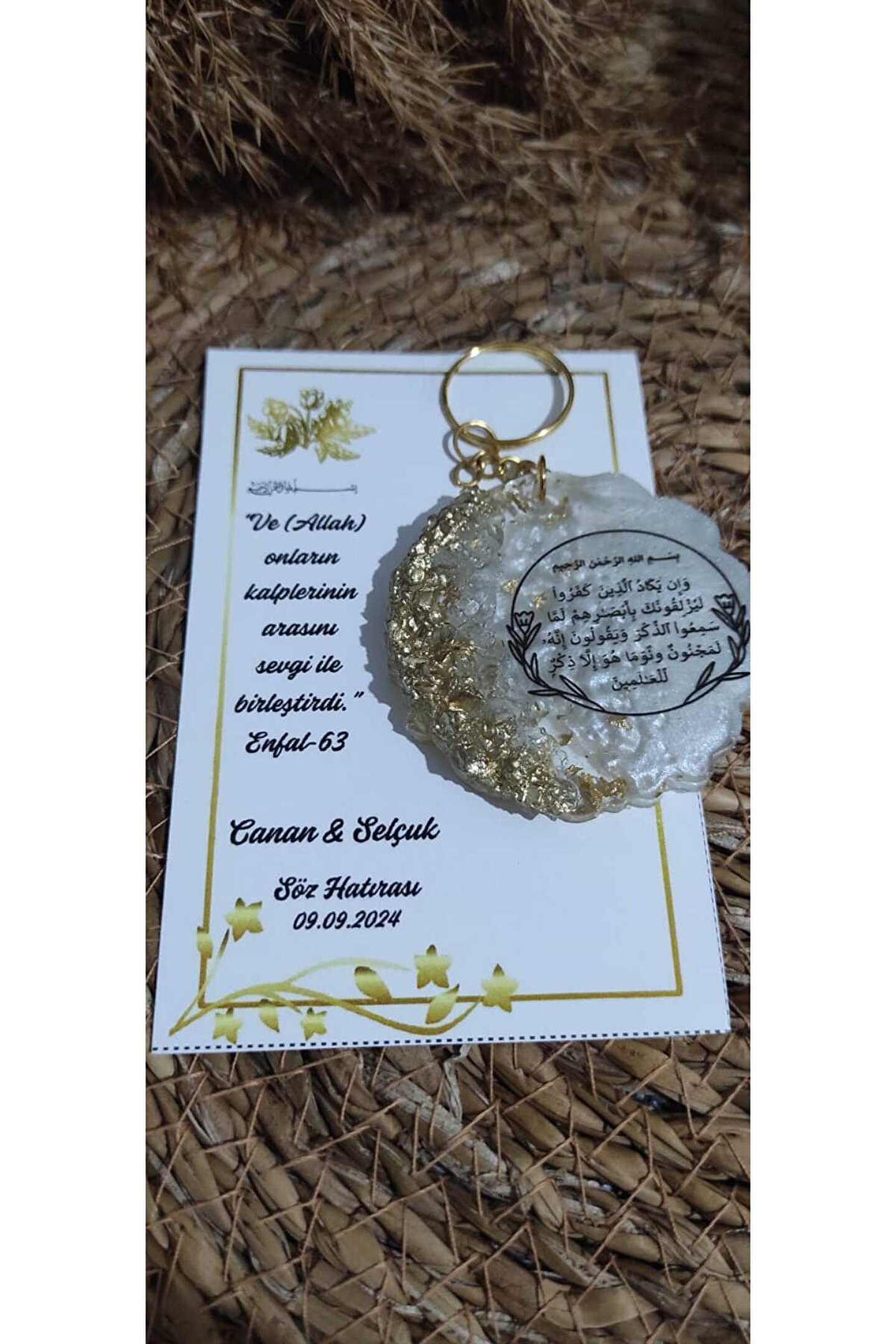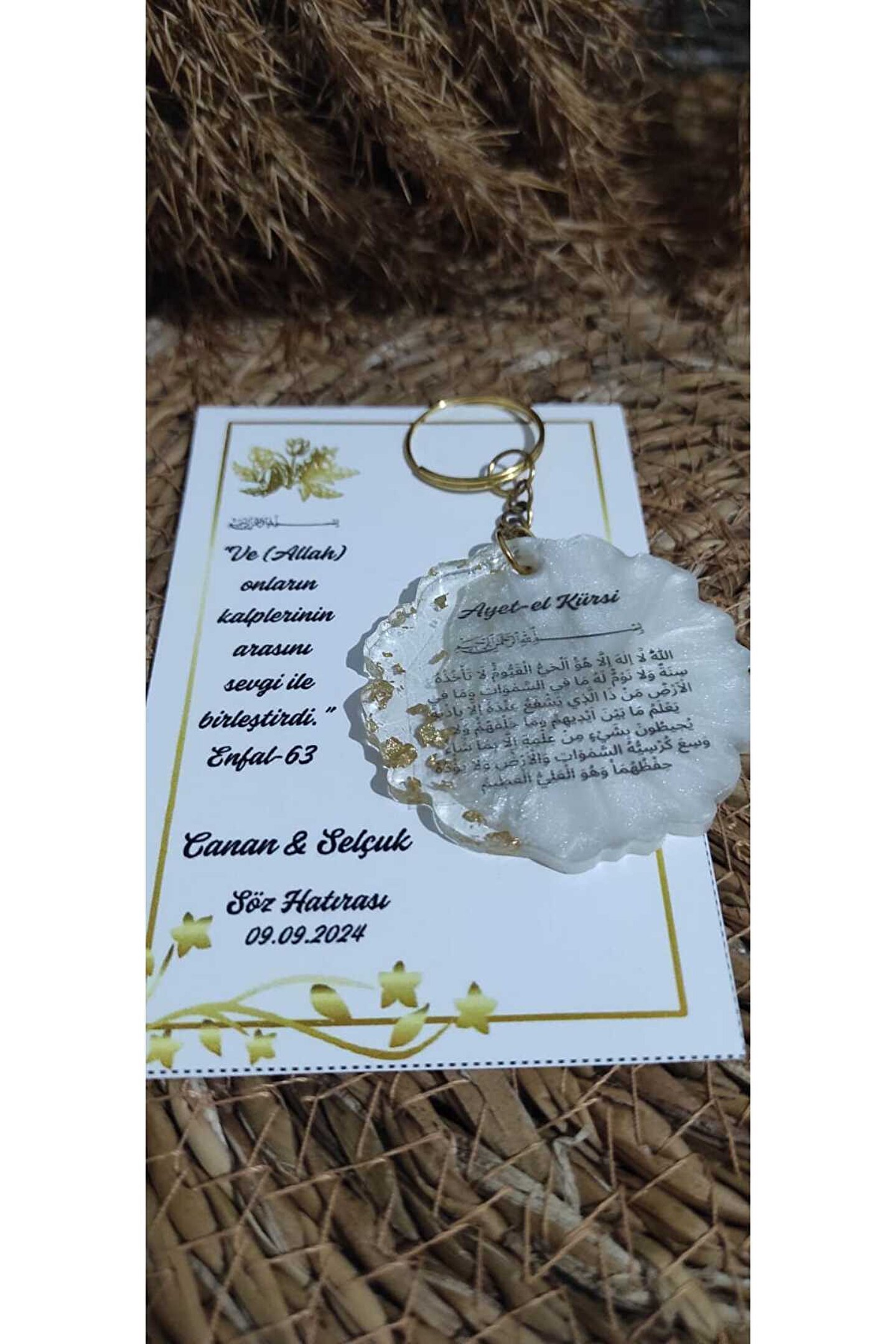 8 Adet ; Epoksi Nazar Ayeti veya Ayet-el Kürsi baskı detaylı anahtarlık ; Gönderim yapılacak anahtarlıkların rengi stoklara bağlı olarak değişiklik gösterebilmektedir; Kişiye özel tasarım kaliteli baskı hatıra kartlı ; Her ürün tek tek jelatinlenerek gönderilecektir ; Alıcının siparişi oluşturduktan sonra 24 saat içinde sipariş numarası ile birlikte özel no-isim-tarih gibi taleplerini satıcıya iletmesi gerekmektedir, aksi durumda magnetler standart baskı ile basılarak gönderim yapılacaktır ;