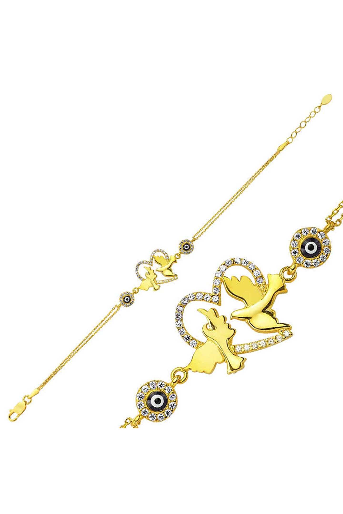 Samur Parti Parti Aksesuar & Kostüm 925 Ayar Gümüş Gold Kalpli Güvercin Bileklik