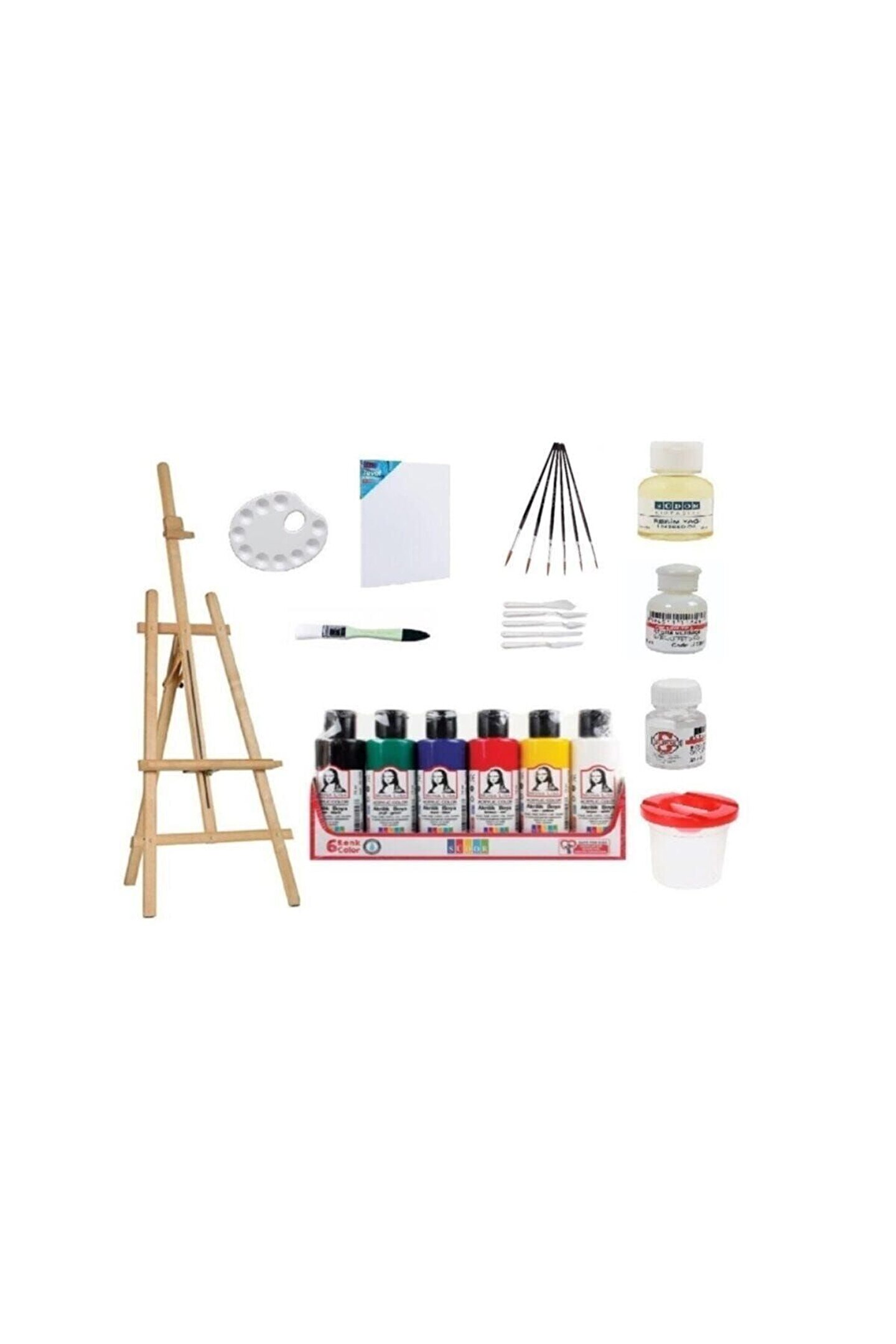 Yağlı Boya Başlangıç Seti Ahşap Şövale 175 Cm Boyanabilir Verniklenebilir