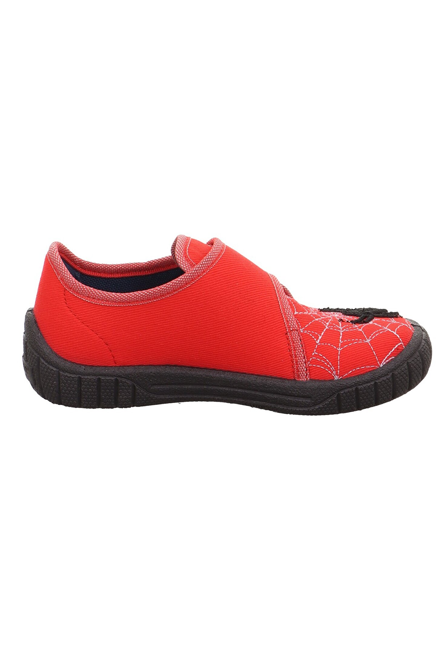 These vegan BILL slippers are simply fun with their cool motif on the front – whether at home, nursery or school.; The superfit model is made from breathable textiles that ensure a great foot climate.; Good to know: BILL’s anti-slip sole leaves no marks on floors.; Colour name: Red Type: Slipper Functions: Non-marking Sole Fastening type: Velcro Fastener Inner lining: Textile Insole material: Textile Upper materials: Textile Width: Medium Sustainable: Vegan Certificates: 100% Vegan Mark of Conformity Made in Europe: Made in Europe Motif: Spider Model: BILL Article number: 1-800271-5010