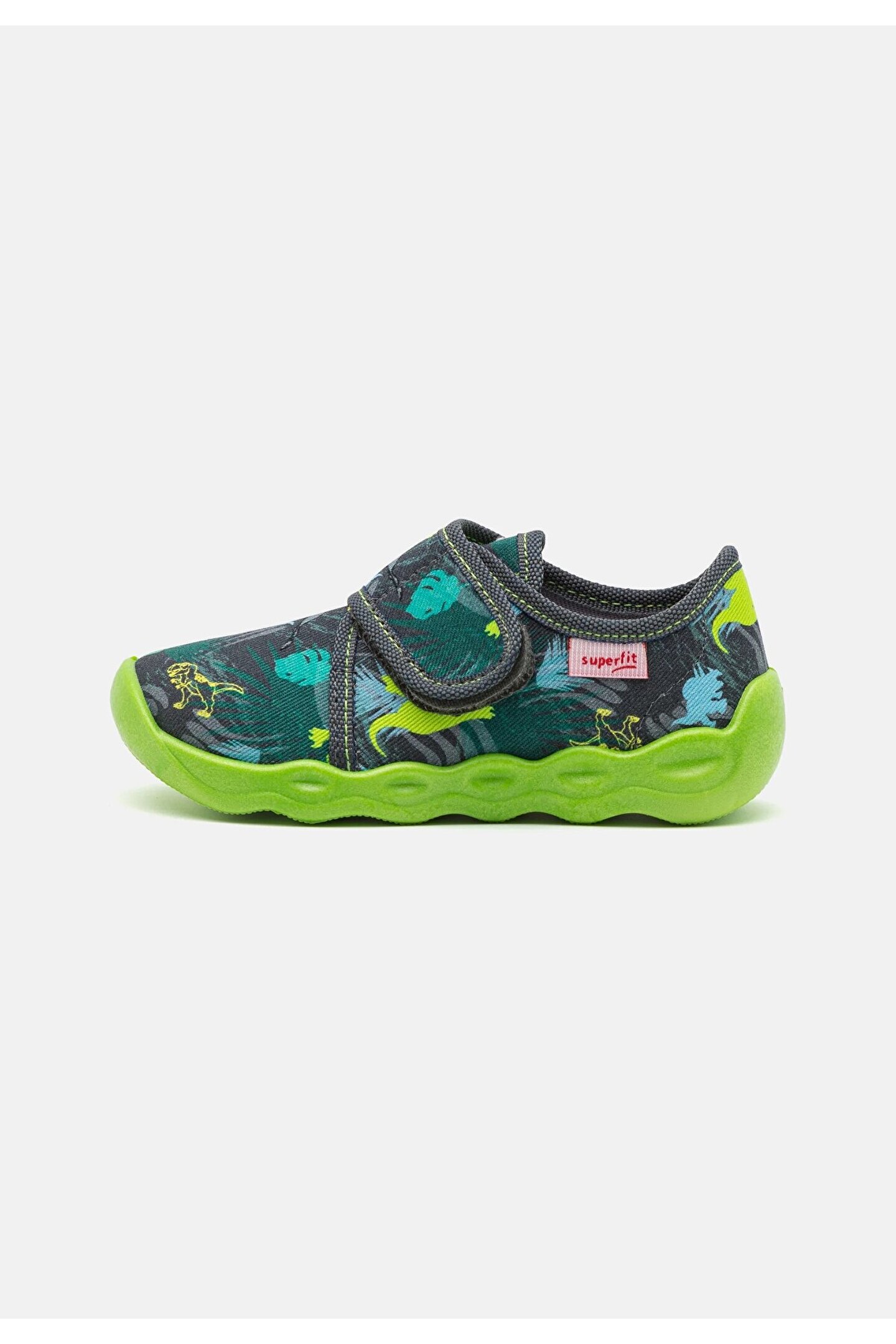 These BUBBLE vegan slippers win over curious kids with ease.; This superfit model features a vibrant print in cheerful colours, paired with a tonal lining and trim.; The super-lightweight sole with its imaginative bubble look offers plenty of comfort, with optimal cushioning thanks to the small air holes.; And that makes BUBBLE fun all round.; Colour name: Blue/Multicolored ; Type: Slipper ; Functions: Non-marking Sole ; Fastening type: Velcro Fastener ; Inner lining: Textile ; Insole material: Textile ; Upper materials: Textile ; Width: Medium ; Certificates: 100% Vegan Mark of Conformity ; Made in Europe: Made in Europe ; Motif: Shark ; Model: BUBBLE ; Article number: 1-006273-8030 ;