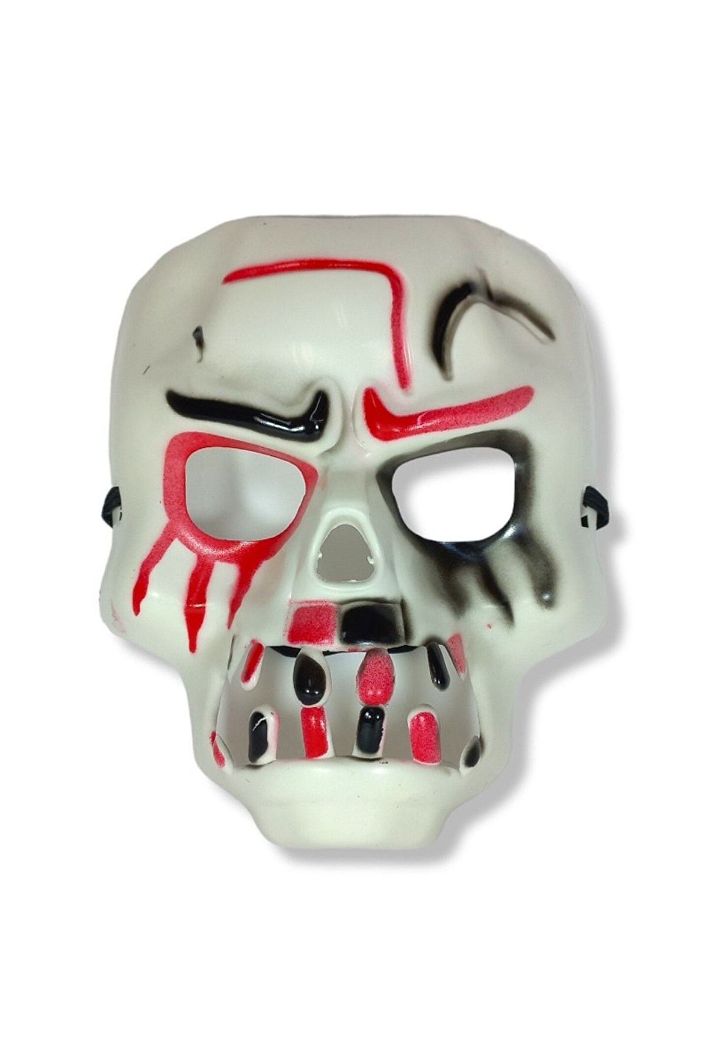 Samur Parti Parti Aksesuar & Kostüm Beyaz Üzeri Rengarenk Korku Dişli Kafatası Maskesi 30x22 Cm