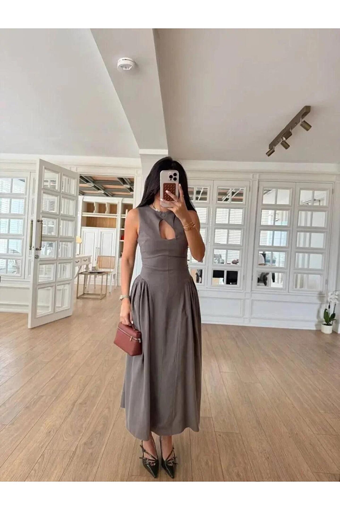 SuQ Kolsuz Uzun Kabardin Elbise - Gri