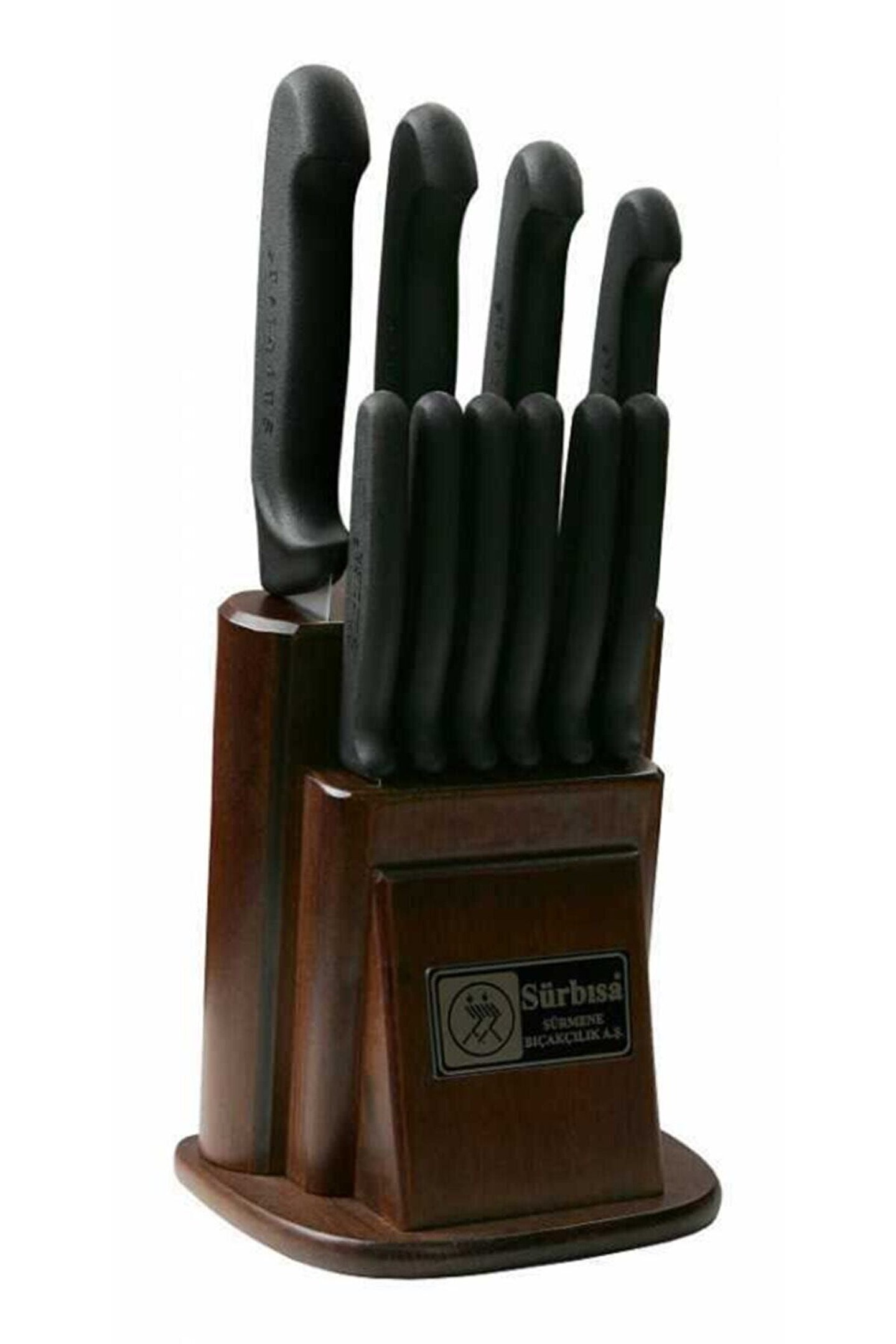 10 Adet Eskitme Renk Ahşap Kütüklü Bıçak Seti Pimsiz Kaydırmaz Plastik Saplı