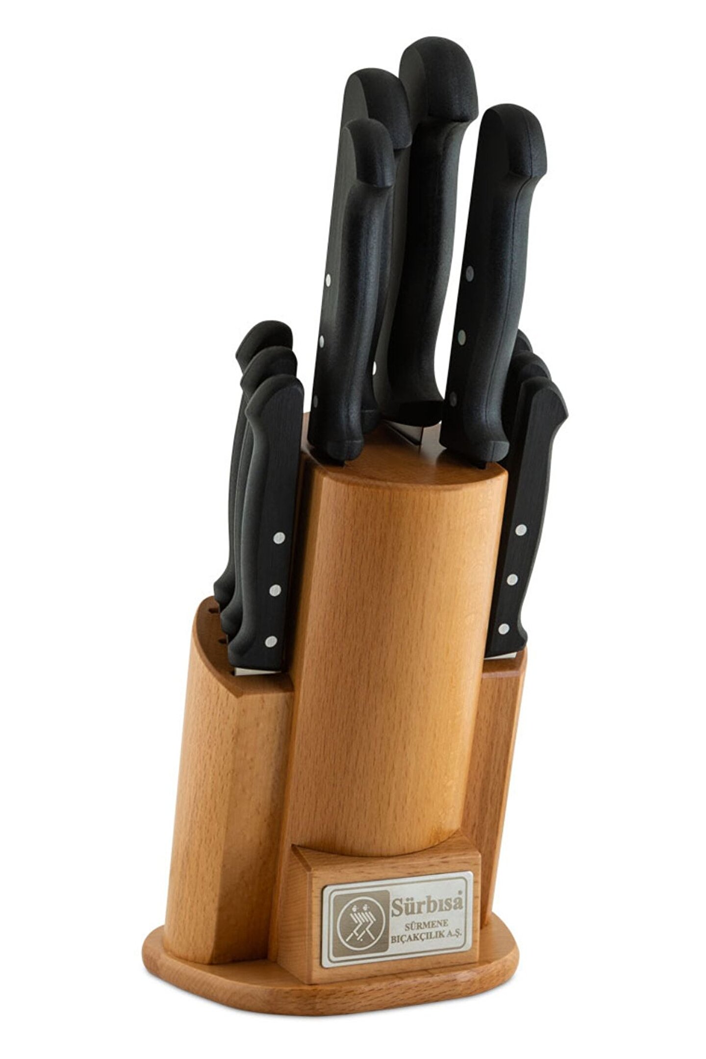 10 Parça Özel El Yapımı Gerçek Sürmene Çelik Bıçak Seti Kaydırmaz Pimli Tutma Sap