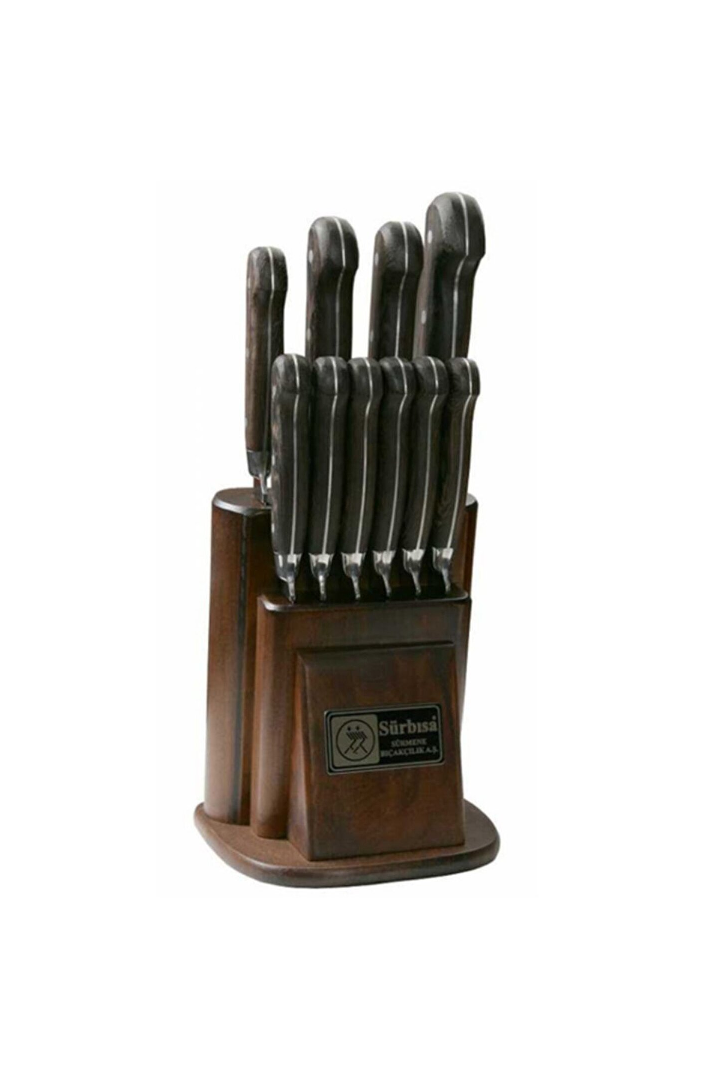 Sürmene Mutfak Bıçağı Eskitme Ahşap Standlı Ahşap Saplı Set 10 Adet