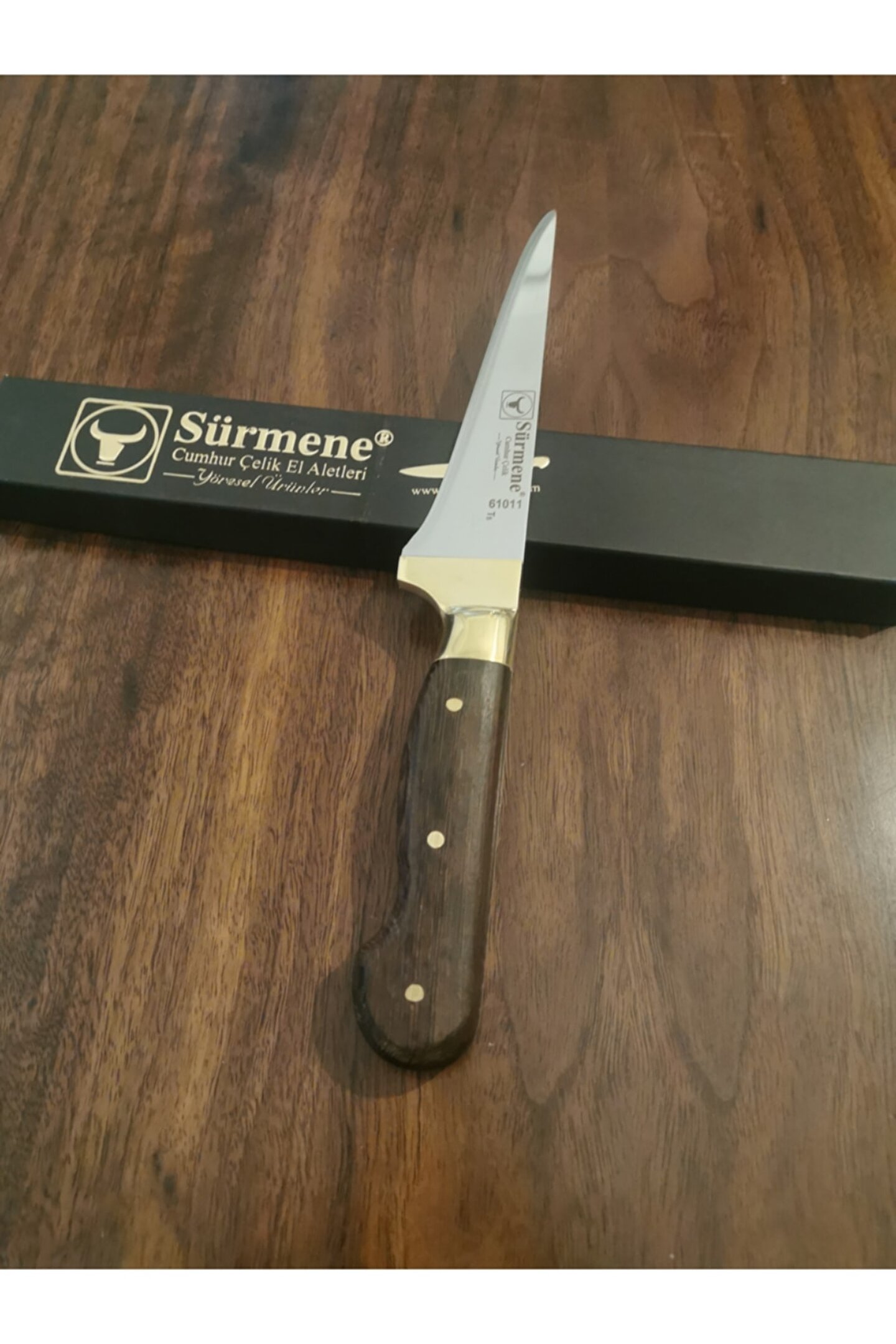 61011 sürmene cumhur çelik gold serisi sebze bıçağı hanımefendilerin mutfakta kolaylıkla sebze doğrama ve et açma ihtiyacını gidermek için üretilmiştir. ; Boydan sap (yekpare) kesici kısmı kaliteli paslanmaz çelikten üretilmiştir. ; Bıçağımızın sapı venge sap olup suya karşı dayanıklıdır. ; %100 el işçiliğidir. ; Kullanım önerileri: Buzlu et, tavuk vb. ; Dondurulmuş yiyeceklerde kullanılmamalı ve bulaşık makinasında yıkanmaması tavsiye edilir. ; Garanti: Paslanmaz çelik garantisi. ; Ürün resimde gözüktüğü gibi orijinal kutusunda gönderilecektir... ; Kesici ağız: 15cm Çelik kalitesi: N6 (paslanmaz çelik) Sap kalitesi: Venge sap Sırt kalınlığı: 3mm;
