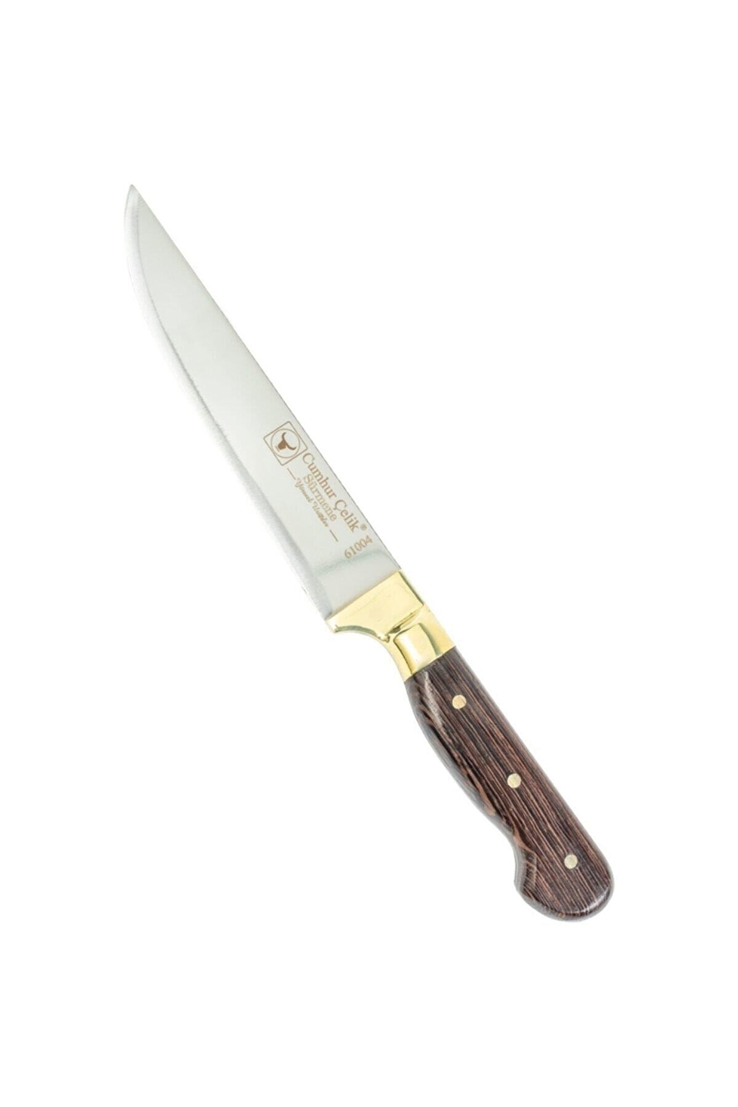 61004 sürmene cumhur çelik gold serisi sebze bıçağı Hanımefendilerin mutfakta kolaylıkla sebze doğrama ihtiyacını gidermek için üretilmiştir. ; Boydan sap (yekpare) kesici kısmı kaliteli paslanmaz çelikten üretilmiştir. ; Bıçağımızın sapı venge sap olup suya karşı dayanıklıdır. ; %100 el işçiliğidir. ; Kullanım önerileri: Buzlu et, tavuk vb. ; dondurulmuş yiyeceklerde kullanılmamalı ve bulaşık makinasında yıkanmaması tavsiye edilir. ; Garanti: Paslanmaz çelik garantisi. ; Kesici ağız:16 cm Çelik kalitesi:N6 (Paslanmaz çelik) Sap kalitesi: Venge sap Sırt kalınlığı:2.5mm;