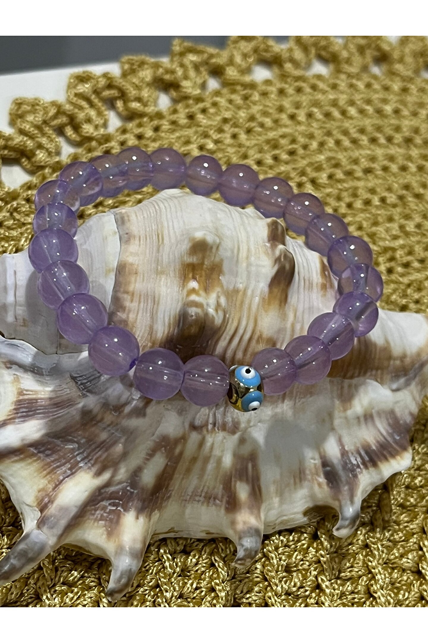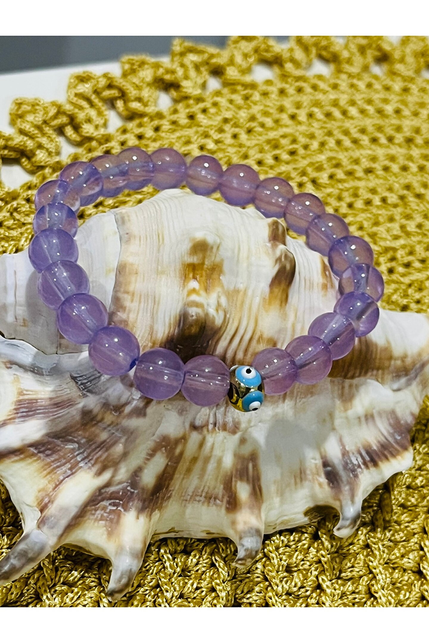 - Zarif tasarımıyla dikkat çeken mor nazar boncuk bileklik, şıklığınızı tamamlar.; - Hem kadın hem de erkek kullanıcılar için uygun olan bu bileklik, unisex tarzıyla herkesin beğenisini kazanır.; - Türkiye'de üretilen bu pozitif enerji taşıyan bileklik, yerel kaynaklı malzemelerle üretilmiştir.; - Doğal taş materyali sayesinde bilekliğinizdeki her detay, doğanın güzelliklerini yansıtır.