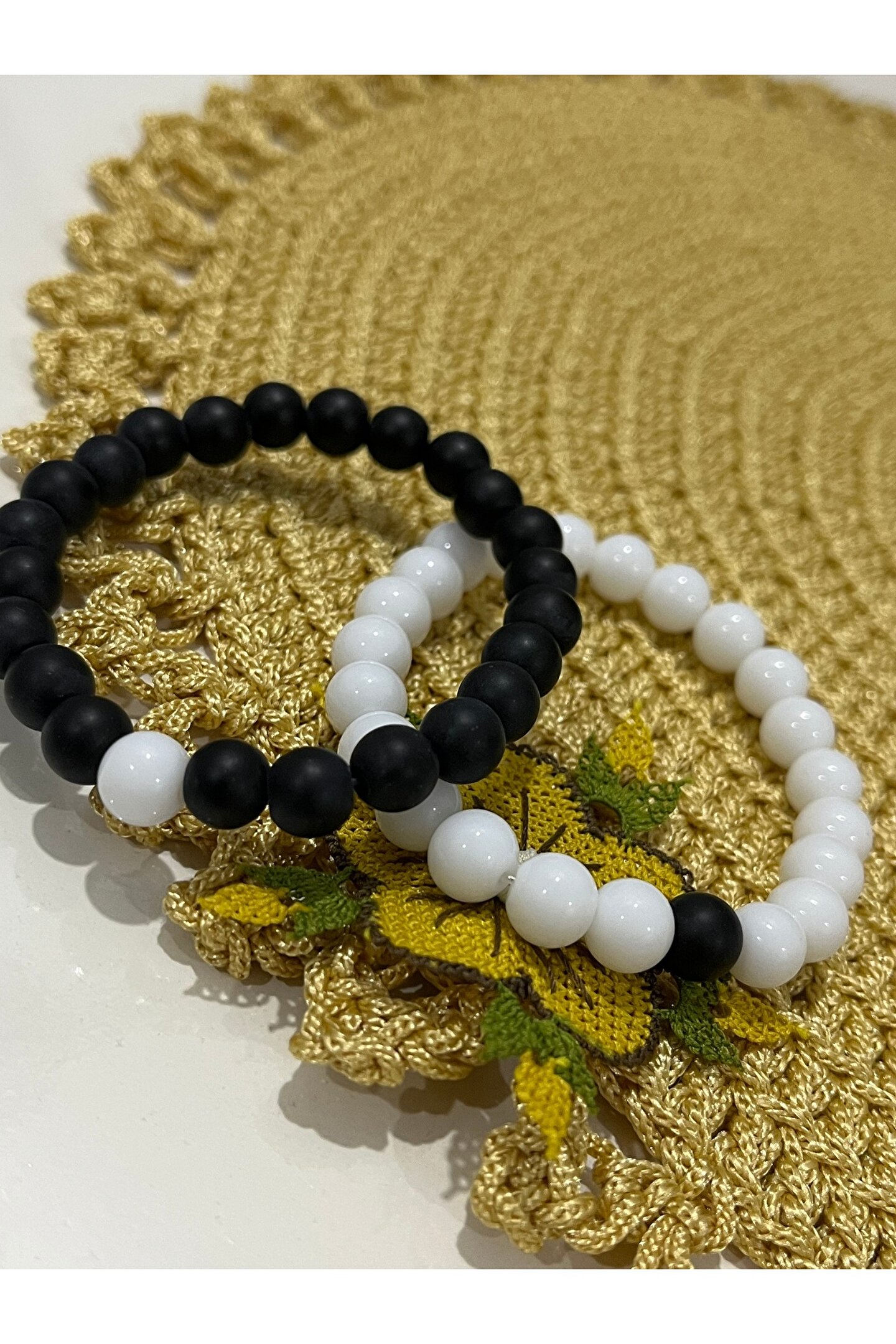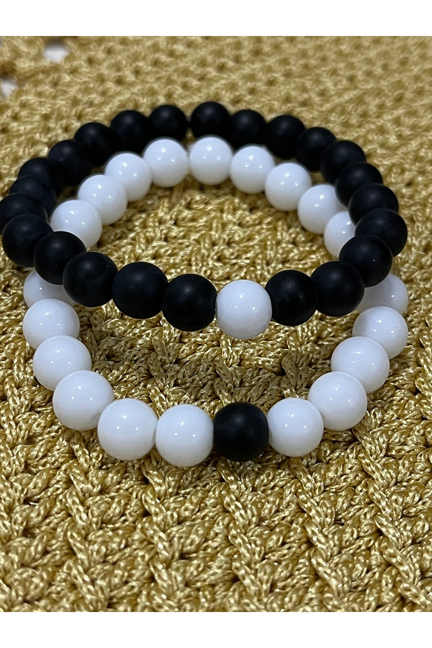 - Siyah beyaz sevgili kombini, şıklığı ve zarafeti bir arada sunar; her anınıza eşlik edecek unisex tasarımıyla hem kadınlar hem de erkekler için idealdir.; - Mat oniks taşı kullanımı sayesinde dayanıklı ve uzun ömürlü bir kullanım vaat eder; günlük kullanımda bile formunu korur.; - Bakım talimatlarına uygun olarak nemli bir bez ile silerek temiz tutabilirsiniz; böylece bileğinizdeki bu özel aksesuar her zaman yeni gibi kalır.; - Yetişkin yaş grubuna hitap eden bu bileklik, hem modern hem de klasik tarzları sevenler için mükemmel bir hediye seçeneği oluşturur.
