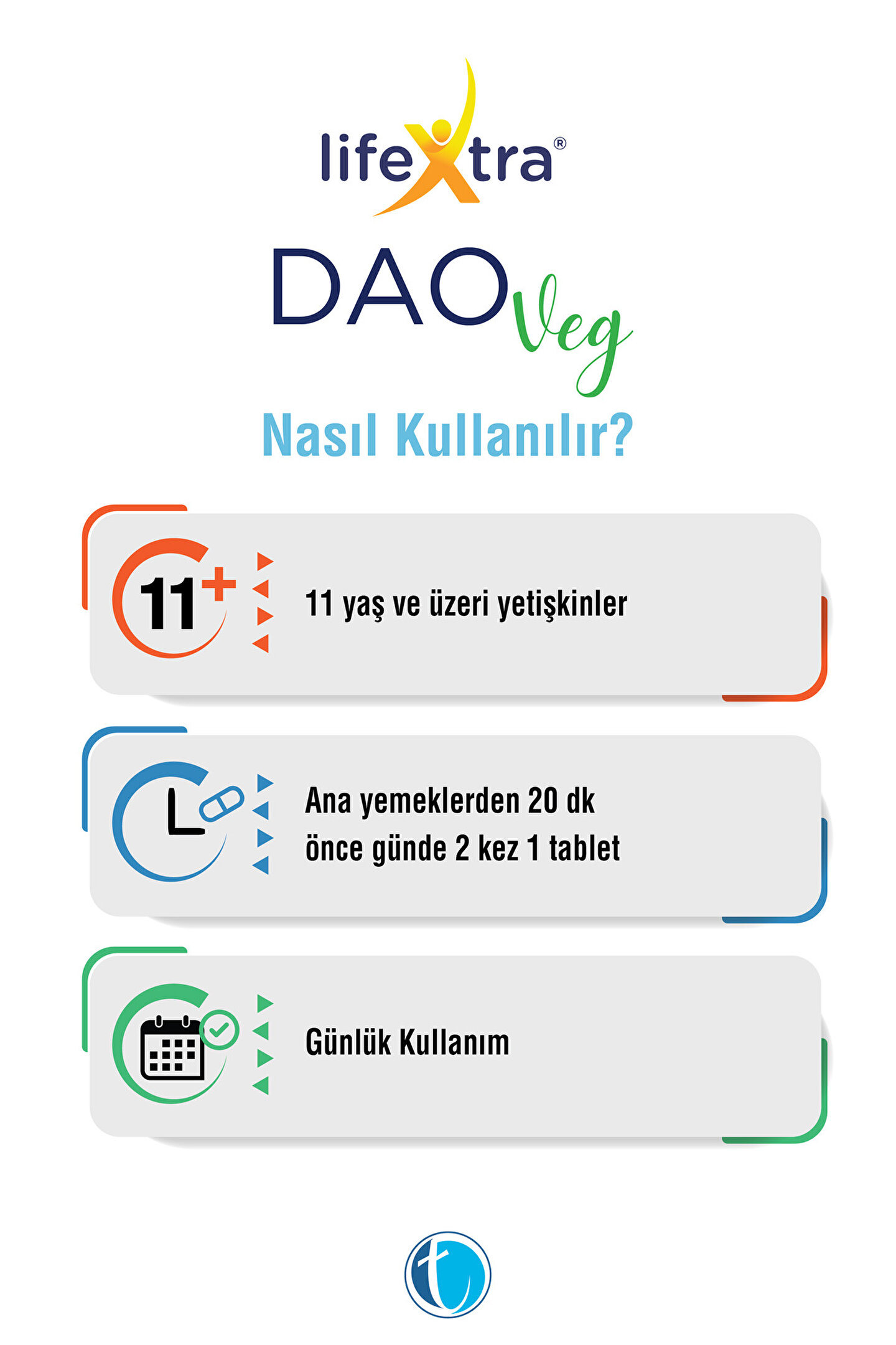Etken Maddeler Miktar (1 Tablet) Bezelye (Pisum sativum L.) Filizi 4,2 mg Diamin oksidaz (DAO)* 0,3 mg * Bezelye Filizi kurutulmus tozundan gelen DAOYerli Üretim cGMPTavsiye Edilen Günlük Alım Dozu: 11 yaş ve üzeri yetişkinler için, günde 2 kez 1’er tablet olmak üzere, yemeklerden 20 dakika önce bir bardak su ile tüketilmesi tavsiye edilir.